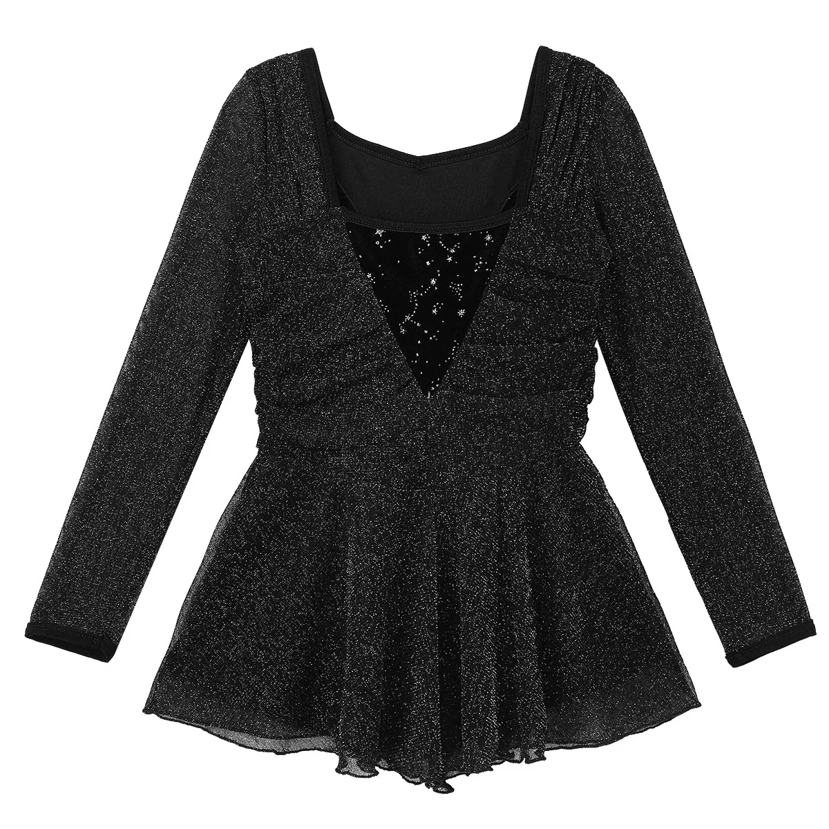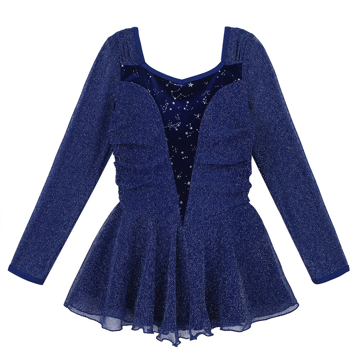 Платье для катания на коньках изготовлено из полиэстера, тюля и лайкры; ручная стирка.