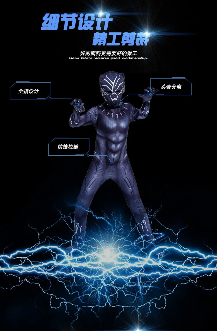 Повод: праздник, косплей Вечерние Персонажи: черный пантера Включает: комбинезон + головной убор 100: 90-100 см 110: 100-110 см 120: 110-120 см 130: 120-130 см 140: 130-140 см 150: 140-150 см 160: 150-160 см 170: 160-170 см 180: 170-180 см 190: 180-190 см