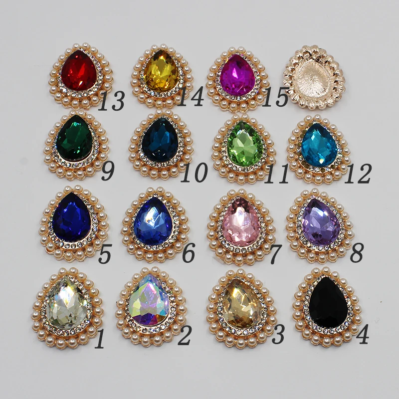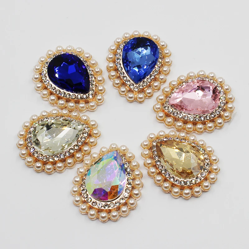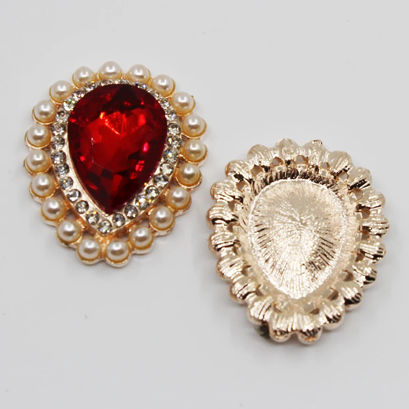 Брошь в виде капель воды, 10 шт., 23*28 мм, Золотая плоская жемчужная пуговица, свадебное украшение для вина, украшение для украшения, скрапбукинга, 2019