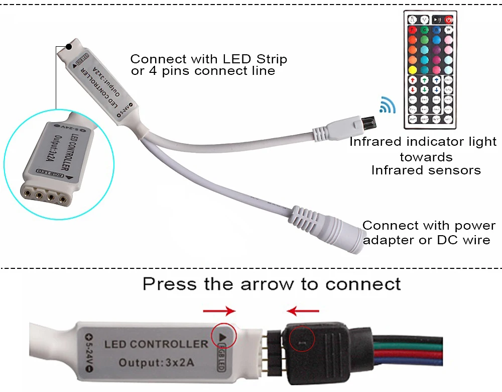 1. Номер модели: Светодиодная лента 2835 RGB 2. Размер светодиодной ленты: Д (5 м) x Ш (0,8 см) 3. Цвет излучаемого света: Светодиодная лента RGB 2835 (Светодиодная лента RGB не белый светильник) (Светодиодная лента RGB-это сочетание нескольких цветов s) 4. Рабочее напряжение: 12 В постоянного тока 5. Количество светодиодный: 60 Светодиодный s/m,5 м/рулон 6. Контроллер: 44 клавиши ИК-пульта дистанционного управления (без батареи) 7. Источник питания: 12 В постоянного тока 1A / 2A / 3A (штепсельная Вилка EU / US / AU / UK)