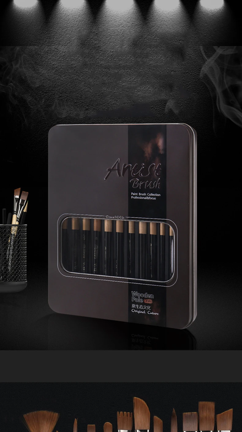 Название: Многофункциональные Наборы кистей twelve Размер коробки: 40,5*26,5*38,5 (см) Материал: нейлоновая шерсть Особенности: много типов кистей для рисования, чтобы удовлетворить основные требования к живописи, с плоской головкой, круглой головкой, острыми головками, но также сэкономить на выборе различных кистей, использование корейского импортного нейлона, медной трубки гальванического пера, общая высокая атмосфера!