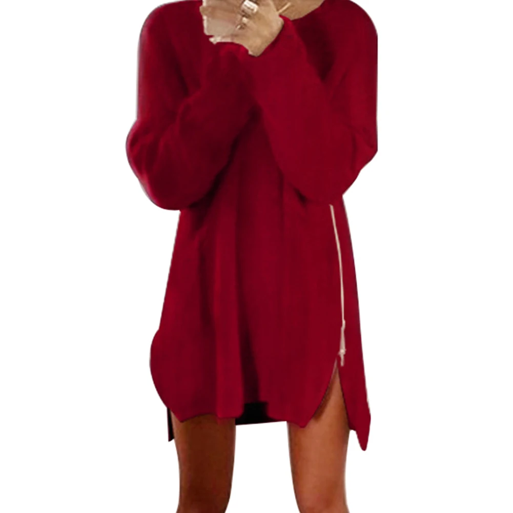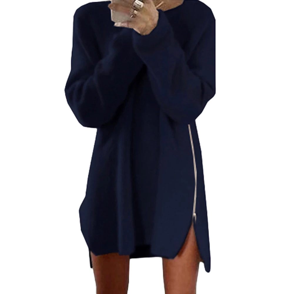 Свободное мини-платье, однотонное с уникальным дизайном с боковой разрезом на молнии.
