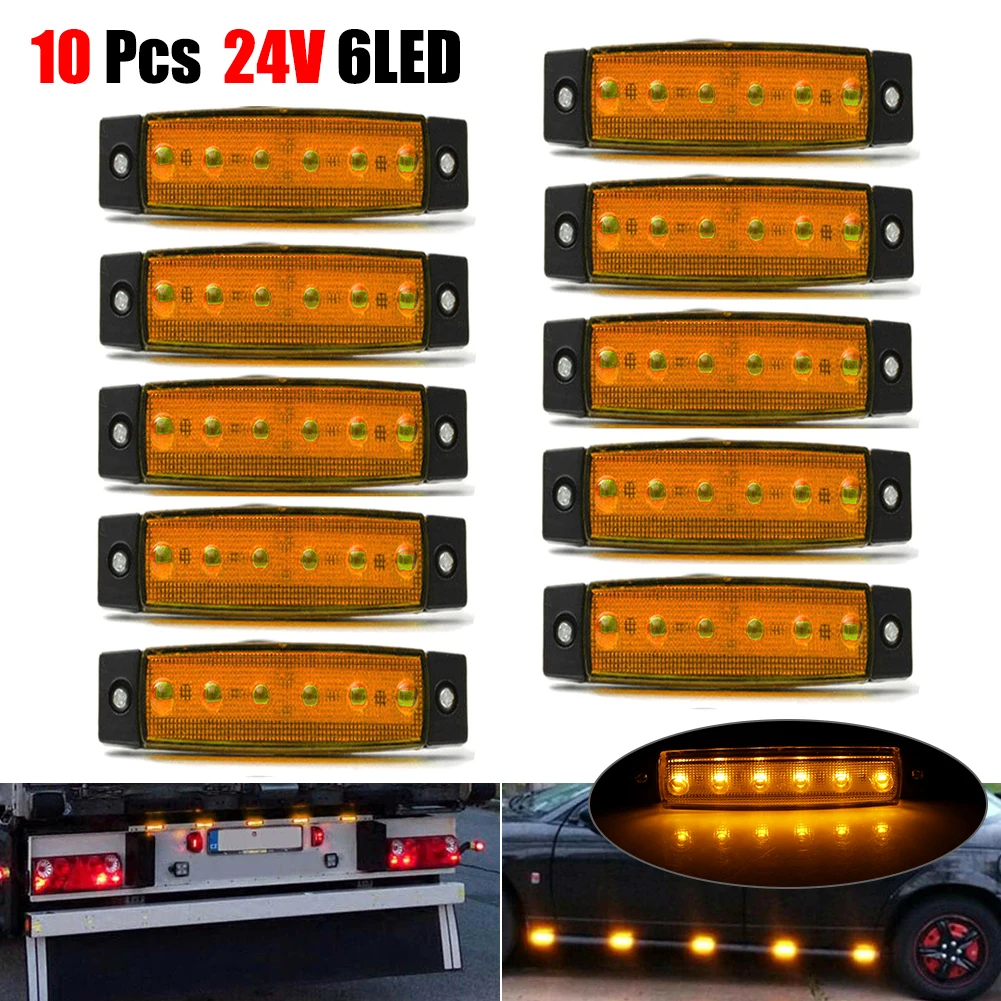 10 шт. желтые автомобильные Внешние огни Светодиодный 24 В 6 Автомобильный светодиодный SMD СВЕТОДИОДНЫЙ Автомобильный Автобус Грузовик вагоны боковой маркер индикатор трейлер свет задняя боковая лампа