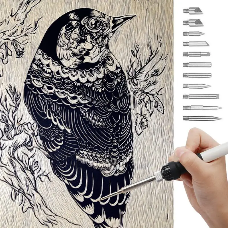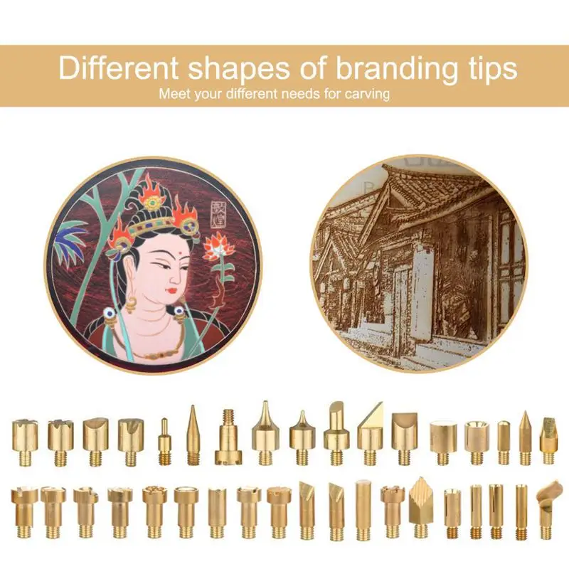 Набор ручек для сжигания дерева 37 в 1: отборные высококачественные штампы для тиснения (5 шт.), наконечники для сжигания дерева (10 шт.), наконечники для резьбы (10 шт.), наконечники для пайки (5 шт.) И Горячий Нож для удовлетворения ваших потребностей и