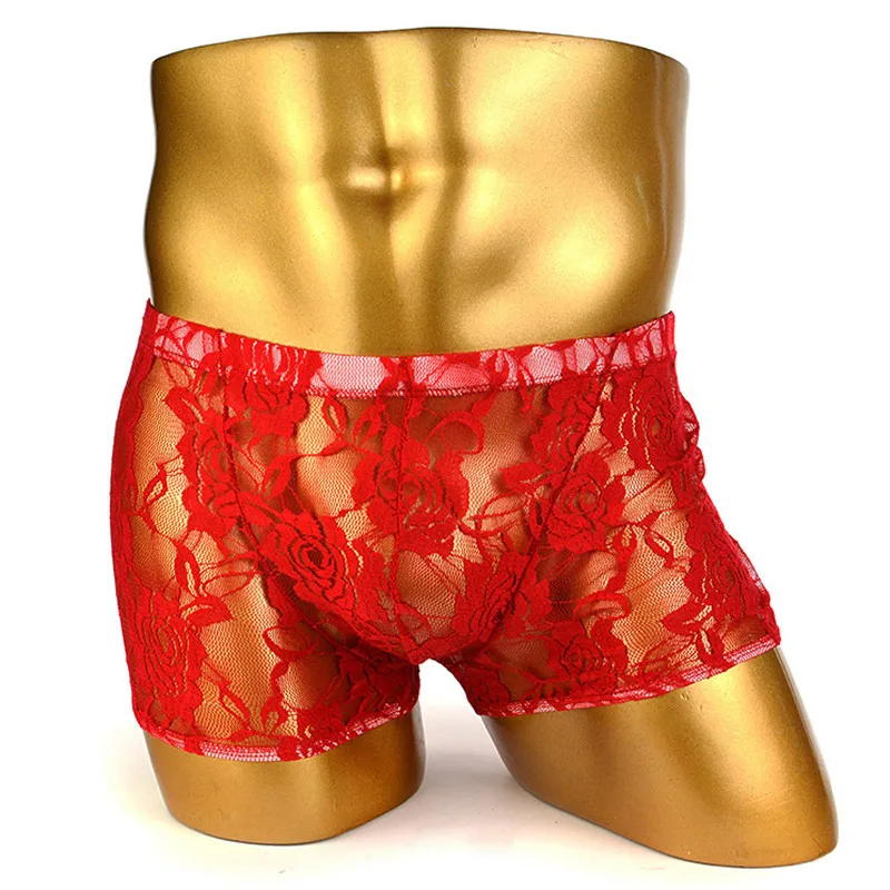 Мужское нижнее белье, трусы-боксеры с выпуклым карманом и кружевным цветком, прозрачное сексуальное нижнее белье для мужчин, Трусы-стринги для ночного клуба, белые прозрачные
