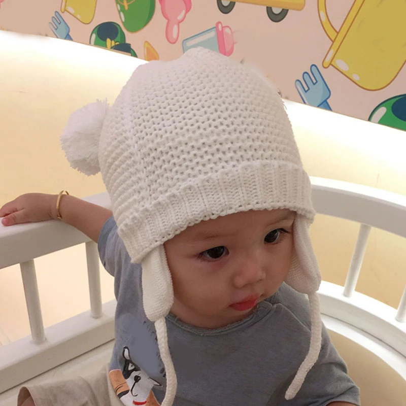Детская шапка; Детская зимняя Милая вязаная теплая однотонная шапка