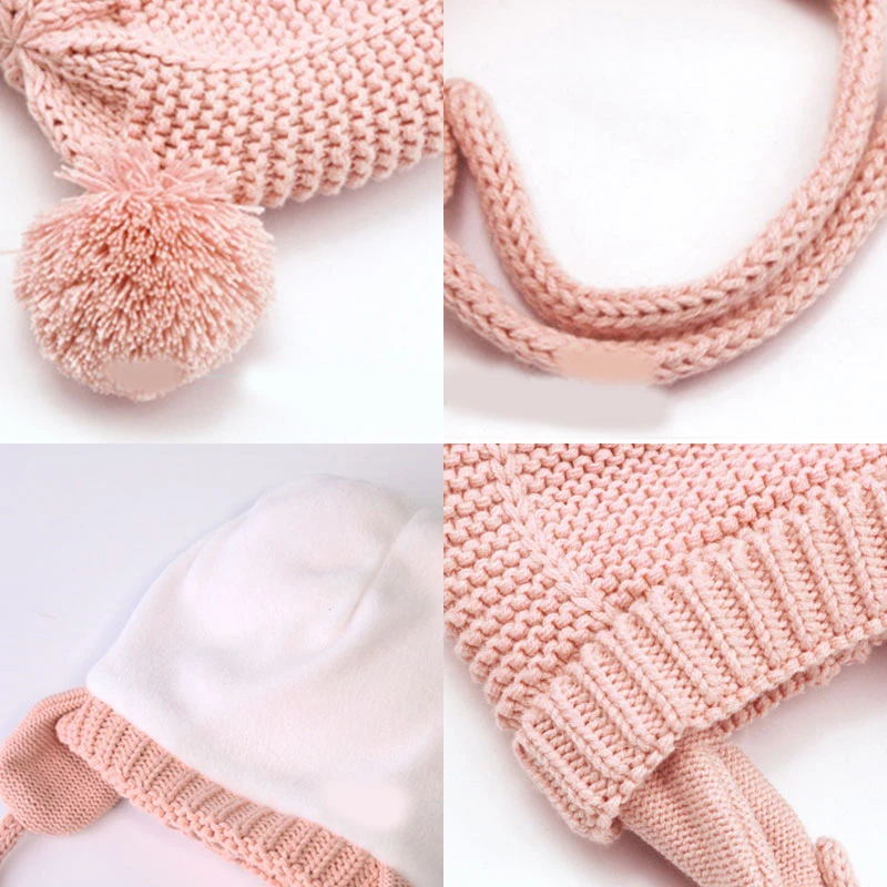 3 размера, детская вязаная шапка с милыми ушками медведя для мальчиков и девочек, двухслойная теплая шапочка
