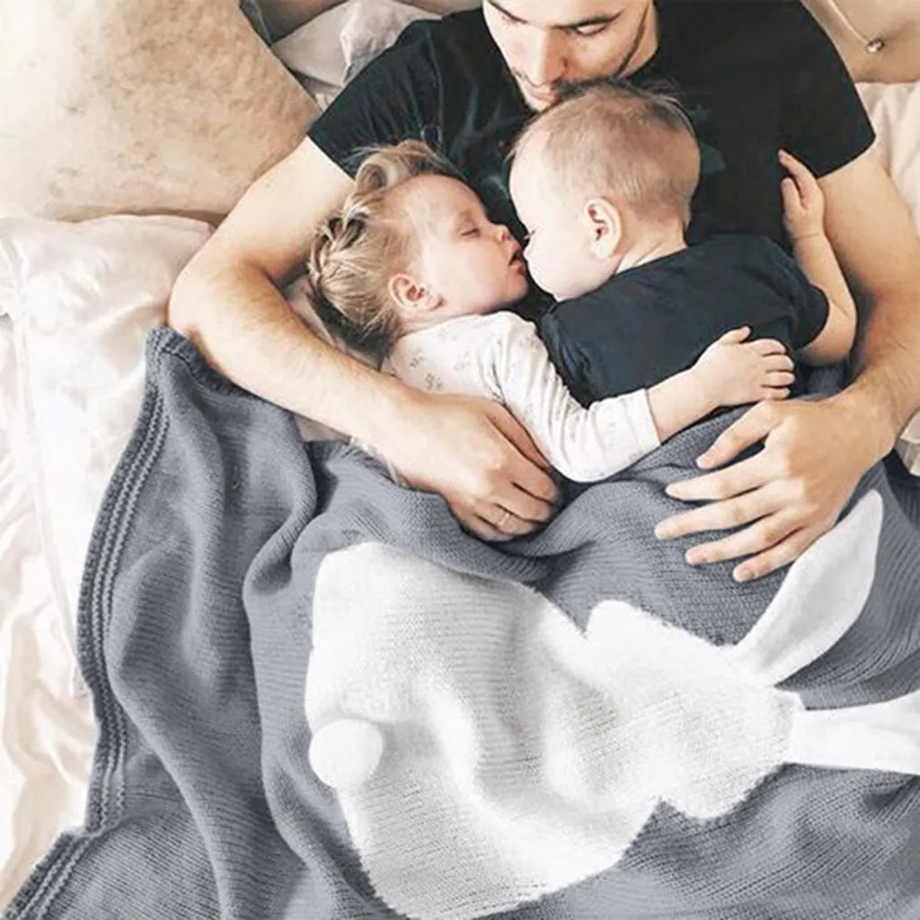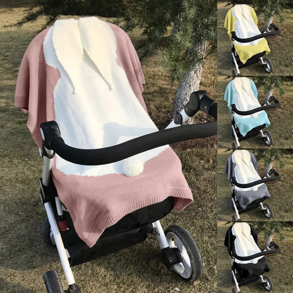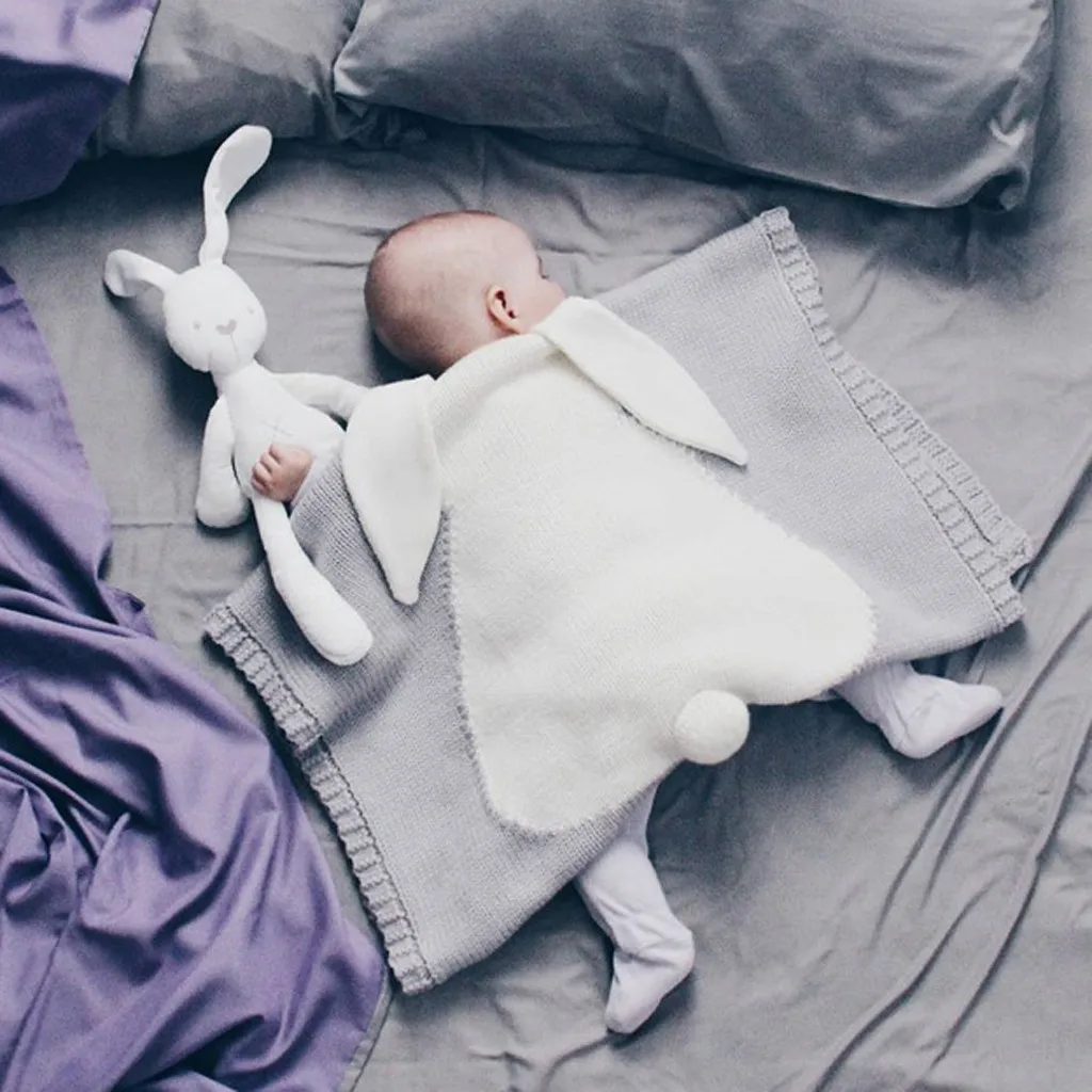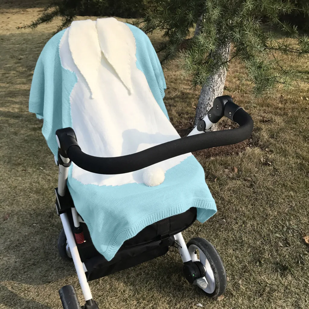 Милое Вязаное детское одеяло с кроликом, мягкое теплое шерстяное детское банное полотенце, милое одеяло для новорожденных