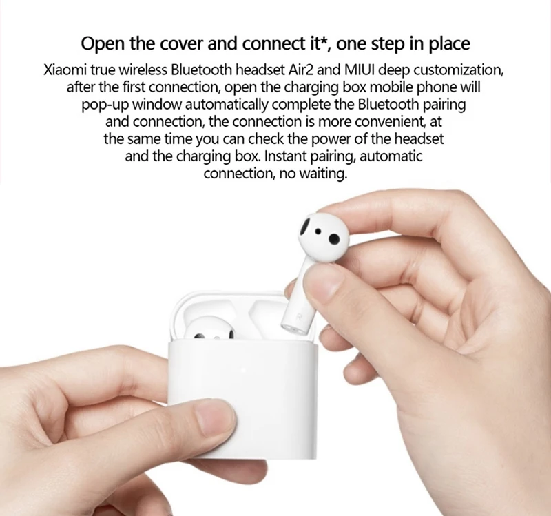 Характеристики: Название товара: беспроводные bluetooth-наушники xiaomi Air 2 Вес: 50 г Беспроводные соединения: Bluetooth 5,0 Сопротивление динамика: 32 Порт зарядки: Тип C Время зарядки: 1 час Рабочее расстояние: 10 м Посылка: 1 * зарядное устройство 1 * наушники слева и справа 1 * зарядный кабель типа c 1 * Руководство пользователя