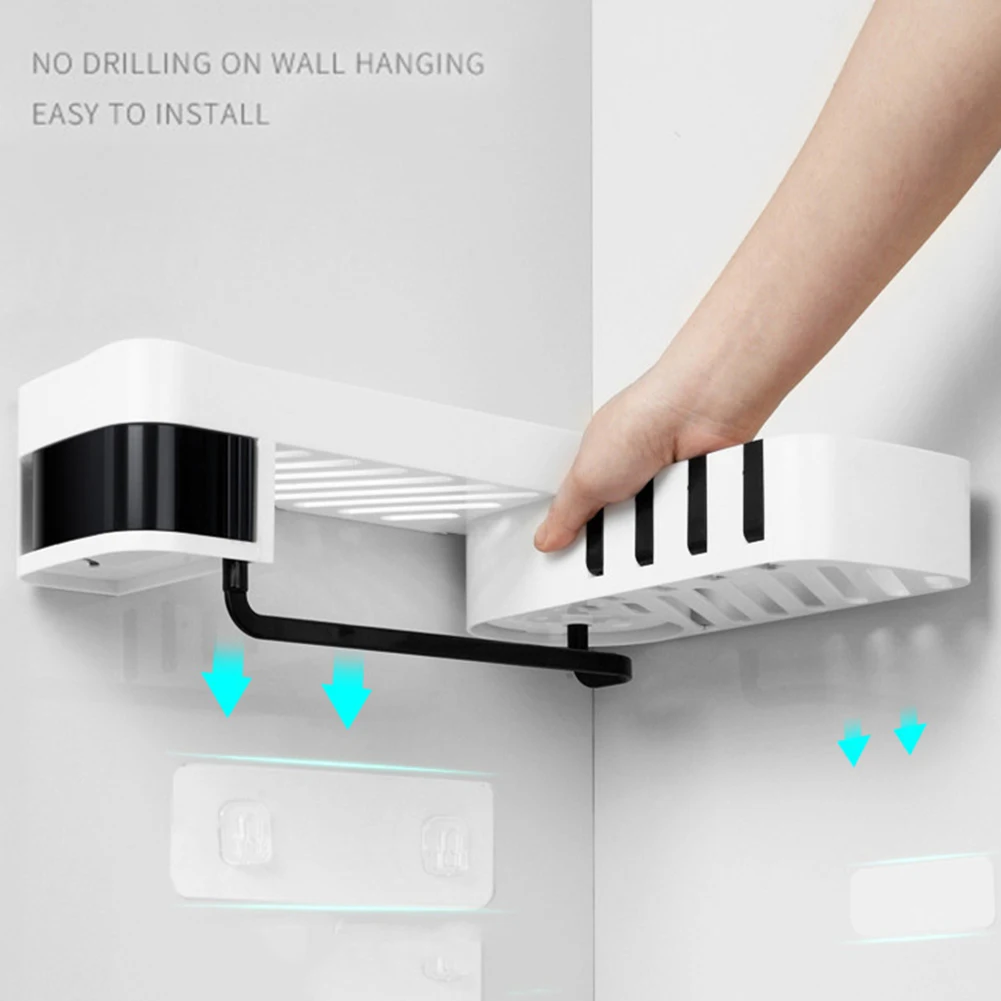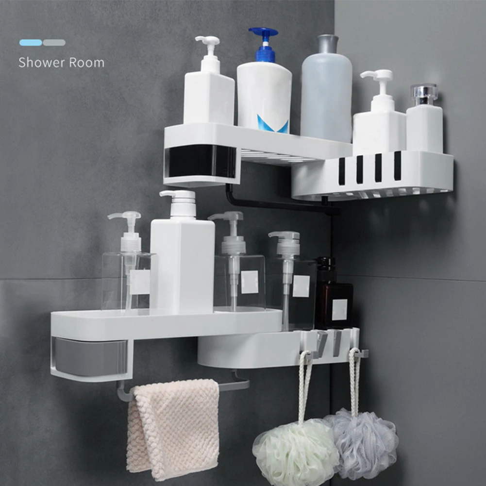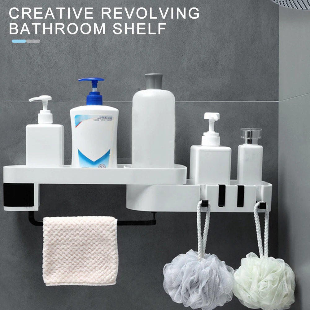 Название продукта: угловая полка для ванной комнаты, вращающийся клейкий Душ Caddy с 4 крючками, настенная полка для ванной комнаты корзина кухонный органайзер для хранения, без сверления