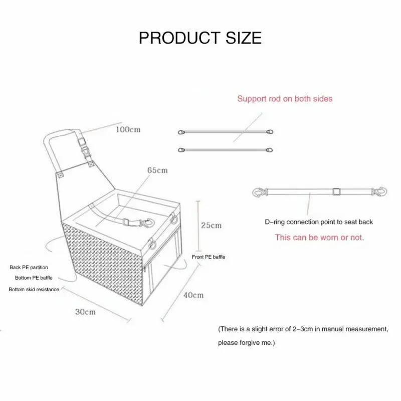 100% абсолютно новое автокресло для собак и кошекИдеально подходит для хранения собак и кошек маленького и среднего размераПрикрепляется к большинству передних/задних автокресел с подголовникамиИзготовлен из прочной ткани 600D Оксфорд, с ПВХ покрытиемПрочный пол и мягкая спинка обеспечивают максимальный комфортУтолщенные мягкие края для дополнительной безопасности и защитыВстроенный регулируемый задний ремень крепится к подголовнику или как плечевой ременьЖесткие быстросъемные пряжки, легко установитьСъемный ремешок спереди с металлическими крючкамиБезопасные металлические кольца для крепления переднего ремешкаКарманы на молнии для хранения маленьких домашних животныхРегулируемый Внутренний Трос крепится к ошейнику/Жгут для безопасностиБыстрая и простая установкаМоющаяся конструкция, складывается для удобного хранения.Технические характеристики: