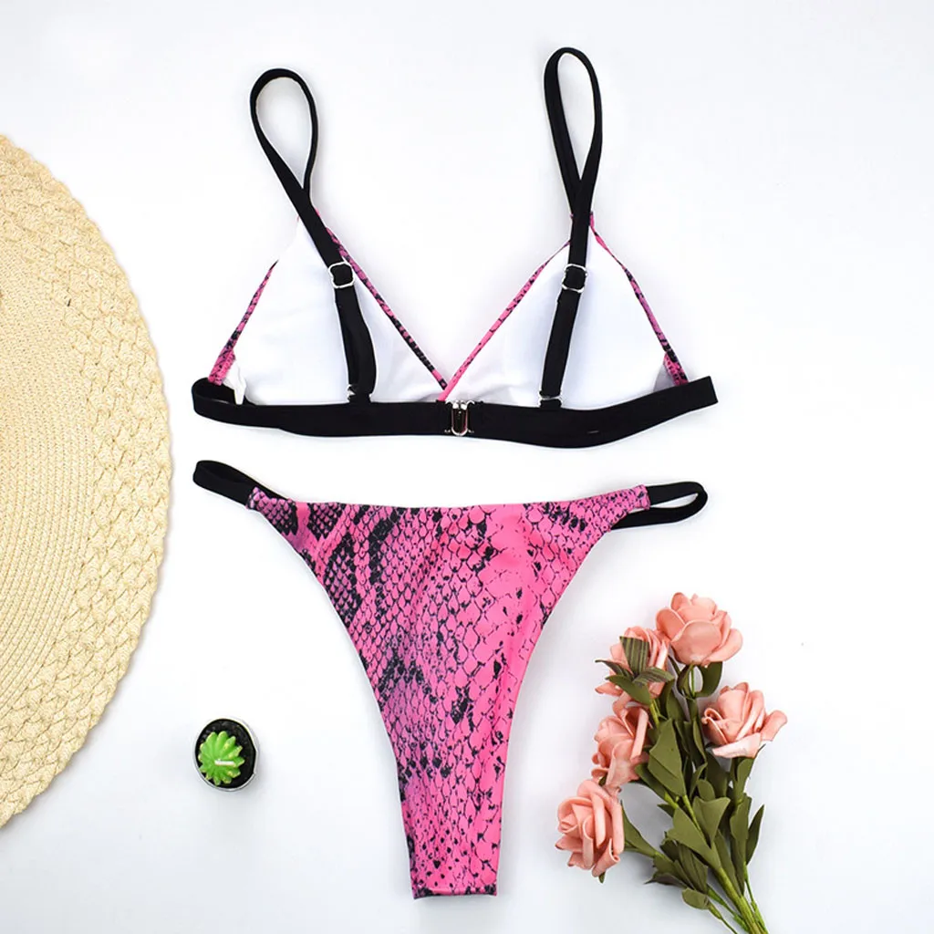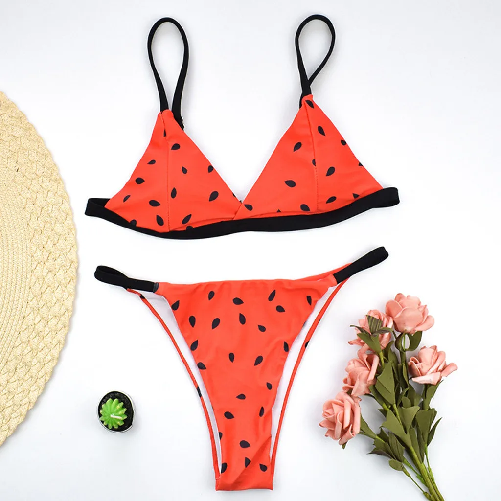 Женский бюстгальтер с пуш-ап принтом, пляжный комплект бикини, купальник, пляжная одежда, купальник