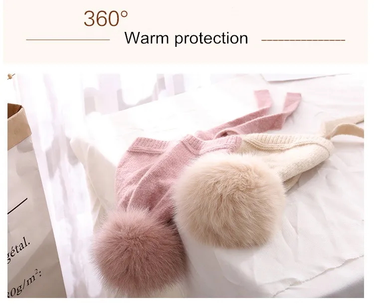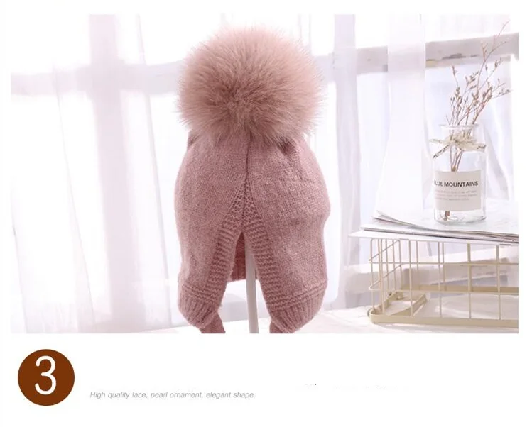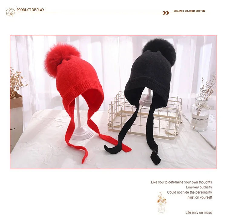 Имя:Зимняя Детская шерстяная теплая шапка с меховым помпоном, шапка с хвостом, милая вязаная шапка для девочек, вязаная шапка для детей 1-6 лет