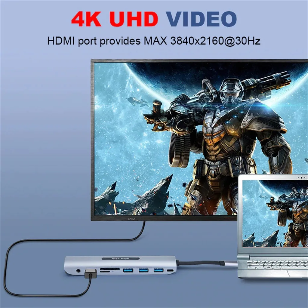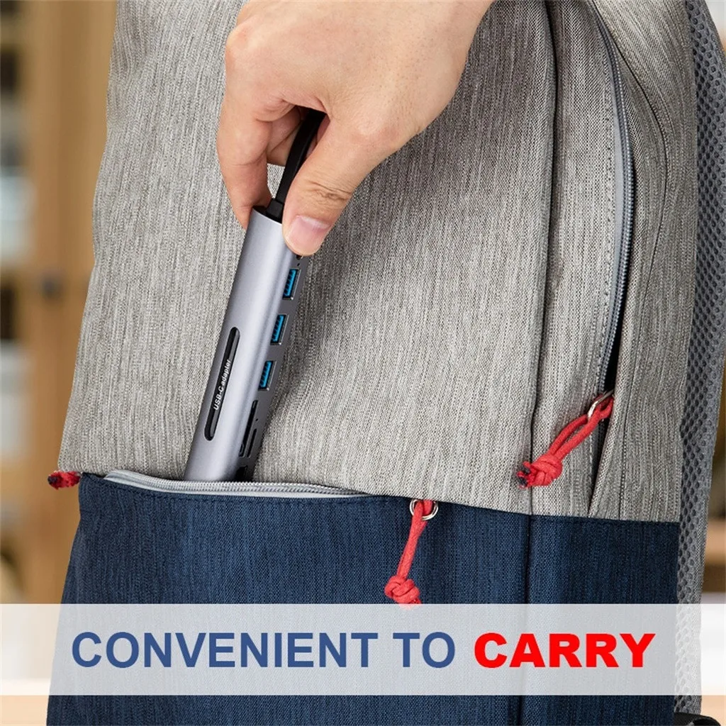9 in1 USB-C to USB3.0x3 Hub TF SD Slot HDMI VGA Audio USB-C PD MultiPort Adapter
