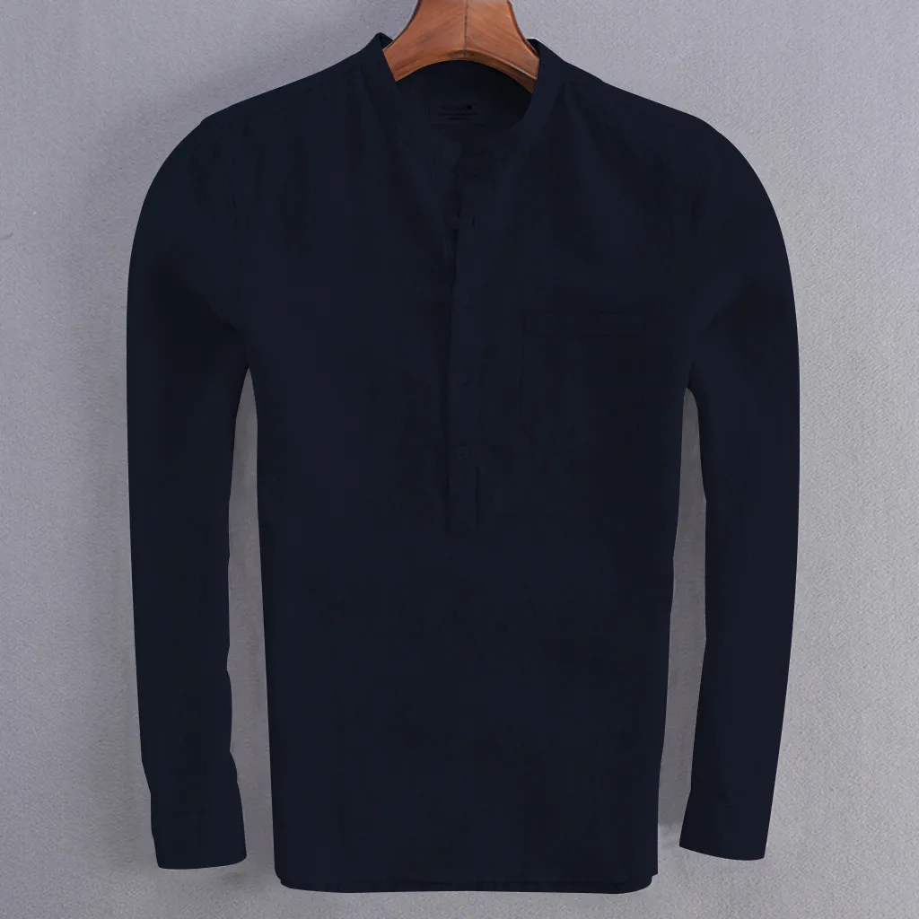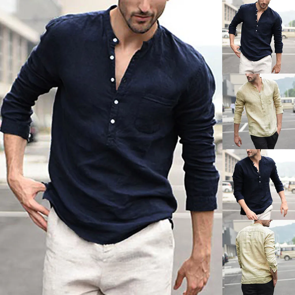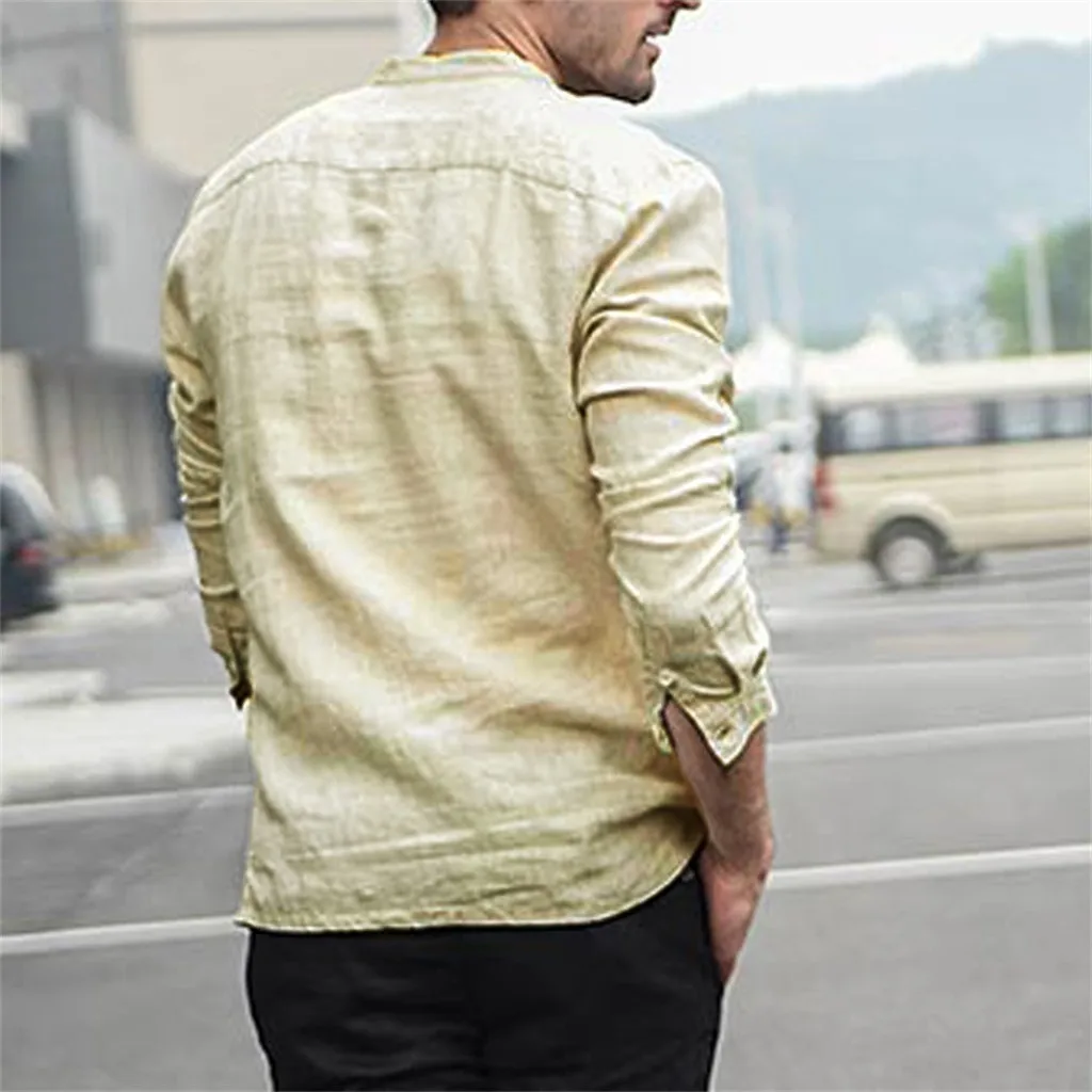 Для мужчин Винтаж Однотонная одежда на пуговицах, плотный льняной пиджак с длинными рукавами в стиле ретро Рубашки, Топы, блузки