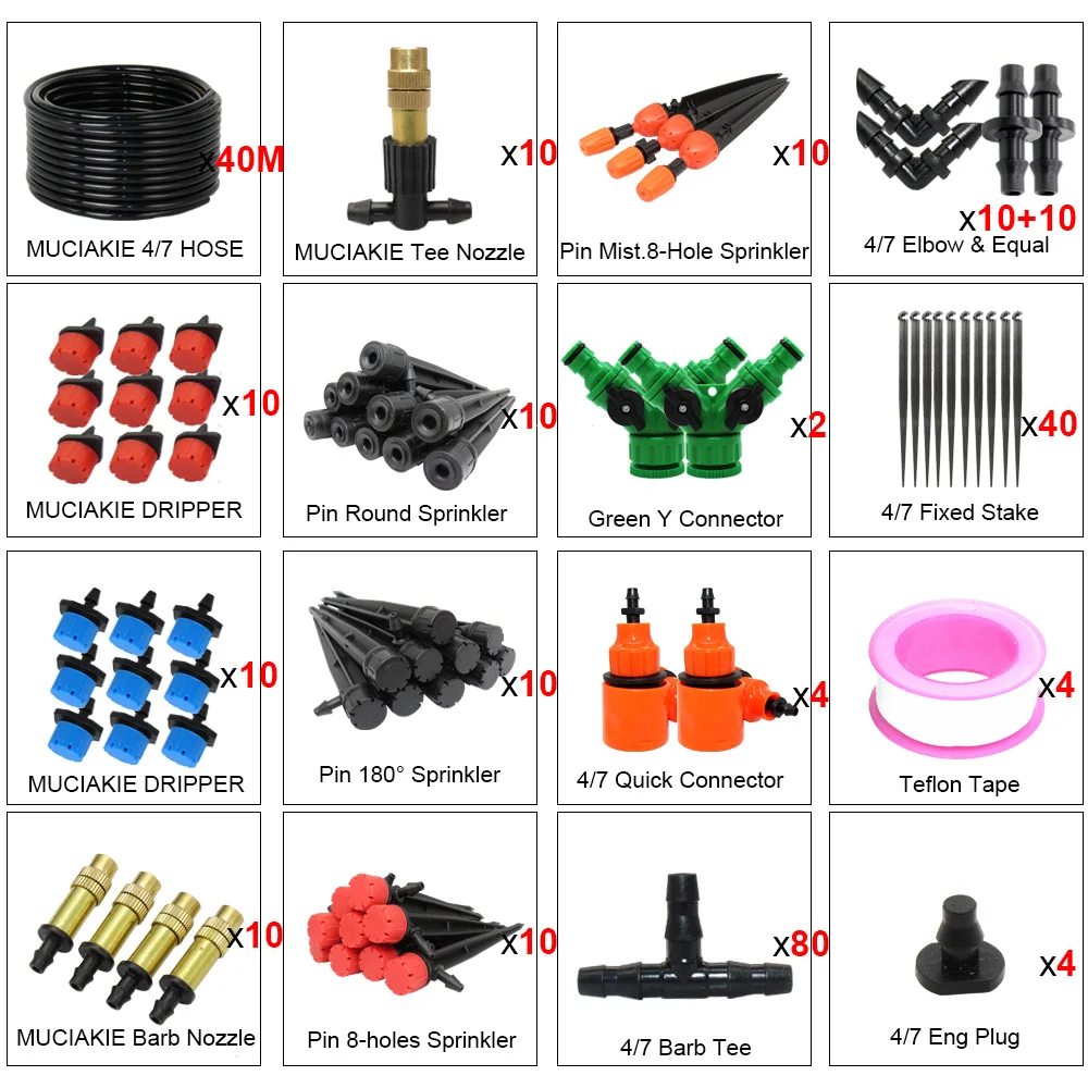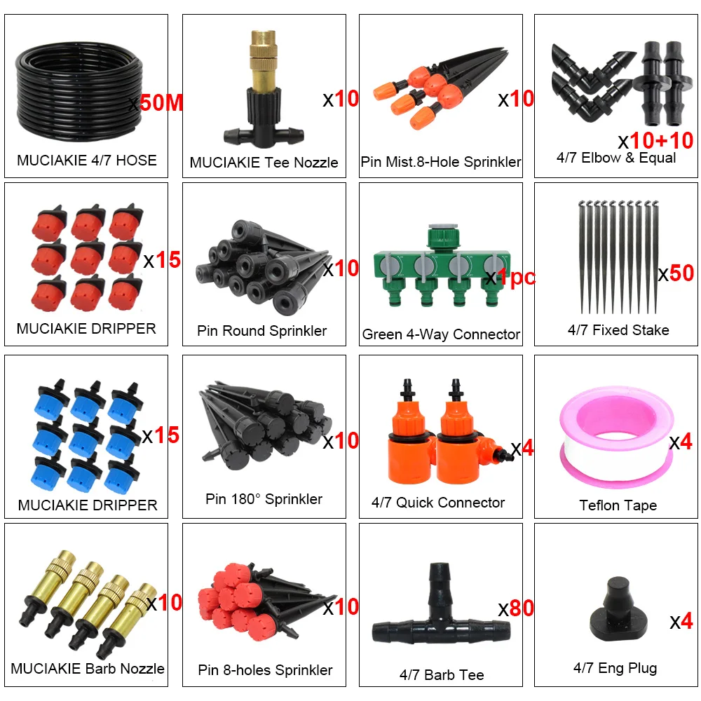 Характеристики: автоматическая система полива MUCIAKIE, 50 м, таймер управления распылителем воды, распылитель на коле