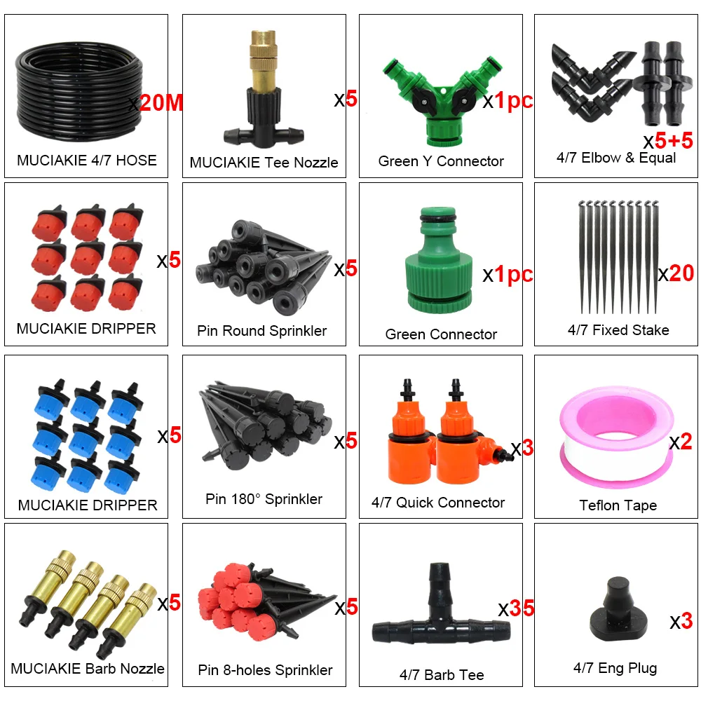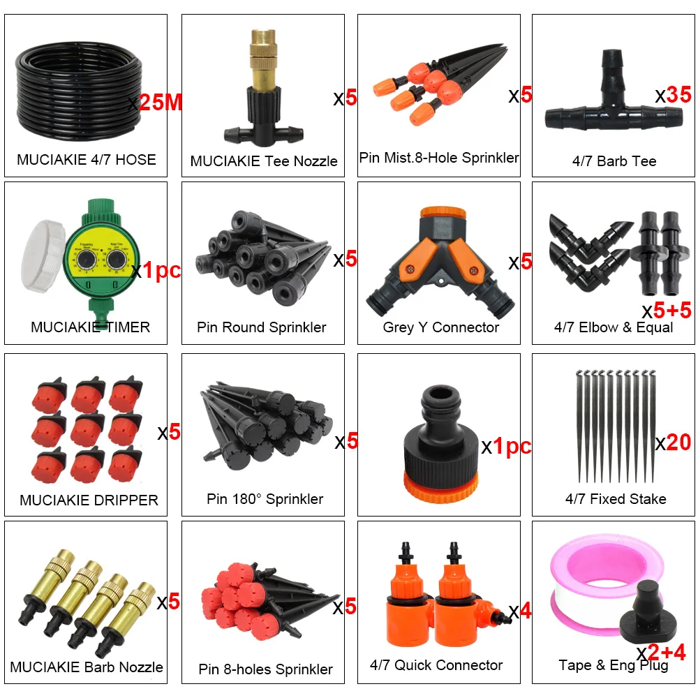Название:MUCIAKIE автоматическая система полива сада 50 м, таймер управления распылителем воды, распылитель на коле