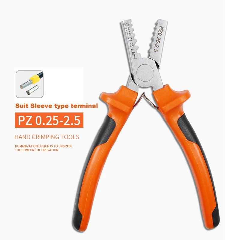 Наименование товара: обжимной инструмент Модель: PZ 0,25-2,5 Способность обжима: 0,25-2,5 (мм²) Длина 145 мм Вес: 0,25 кг Материал металла: углеродистая сталь