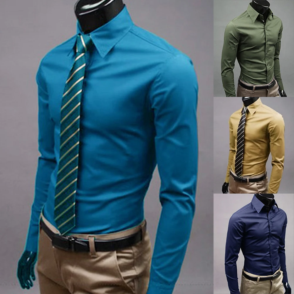 Модные мужские туфли Цвет цельные бесшовные трусики подходят на пуговицах, с длинными рукавами с отложным воротником рубашка с воротником Топ