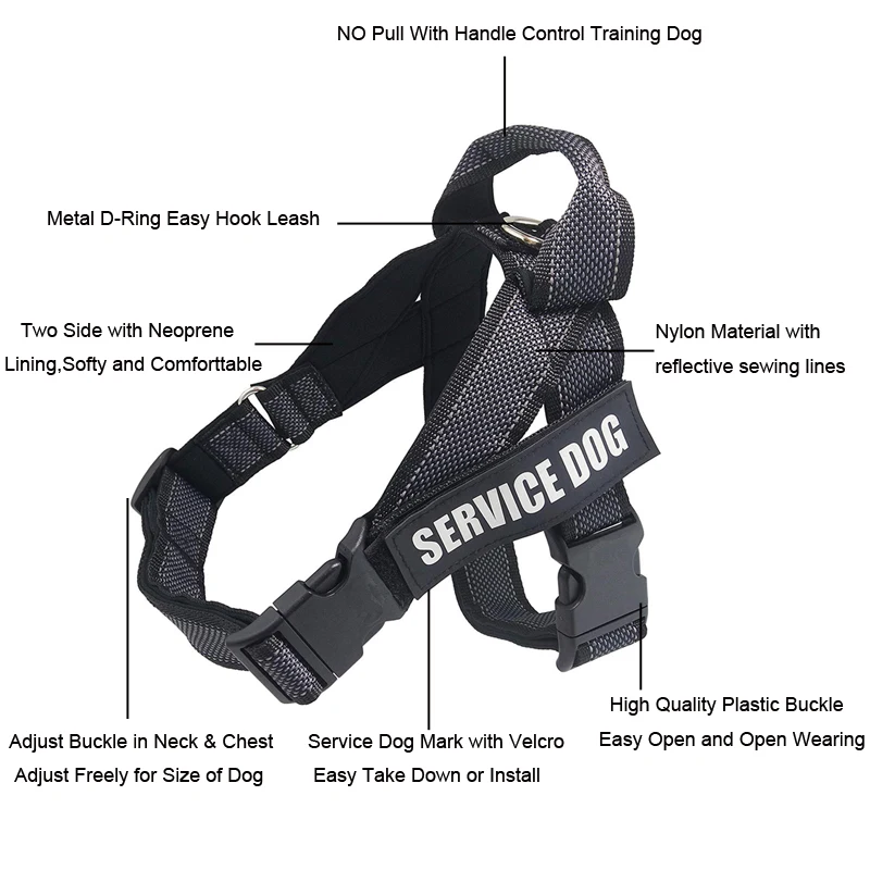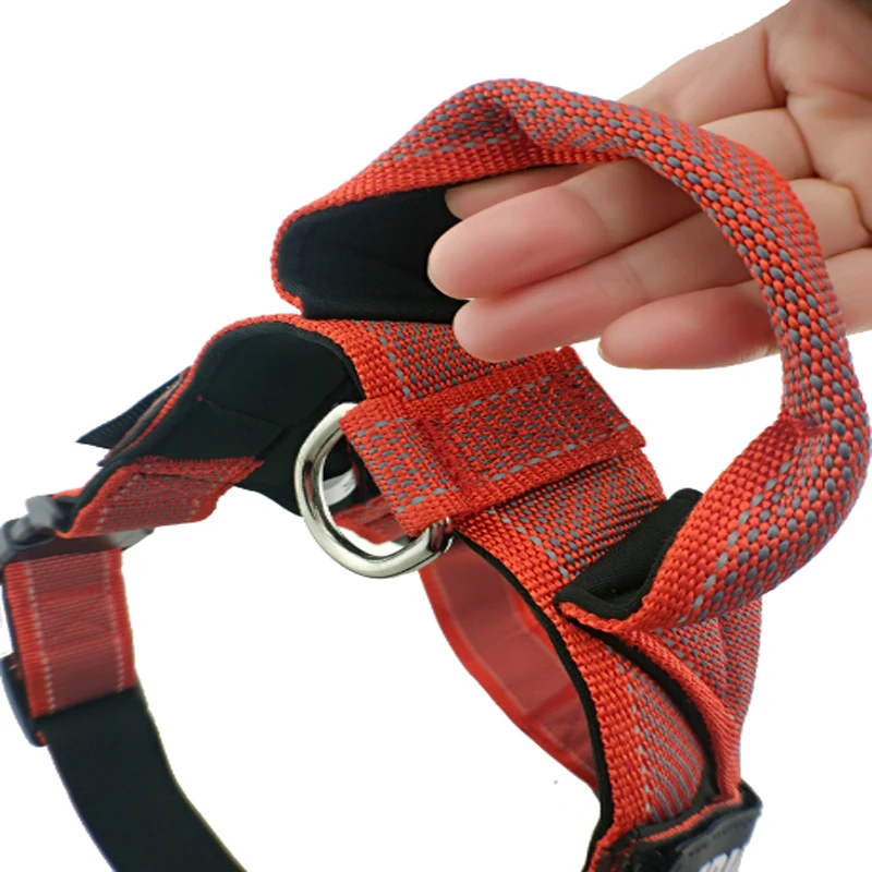 1), высококачественный нейлоновый материал, передняя часть со светоотражающими линиями на поводке для собаки, Неопреновая подкладка для мягких подушек, не повреждает кожу собаки;