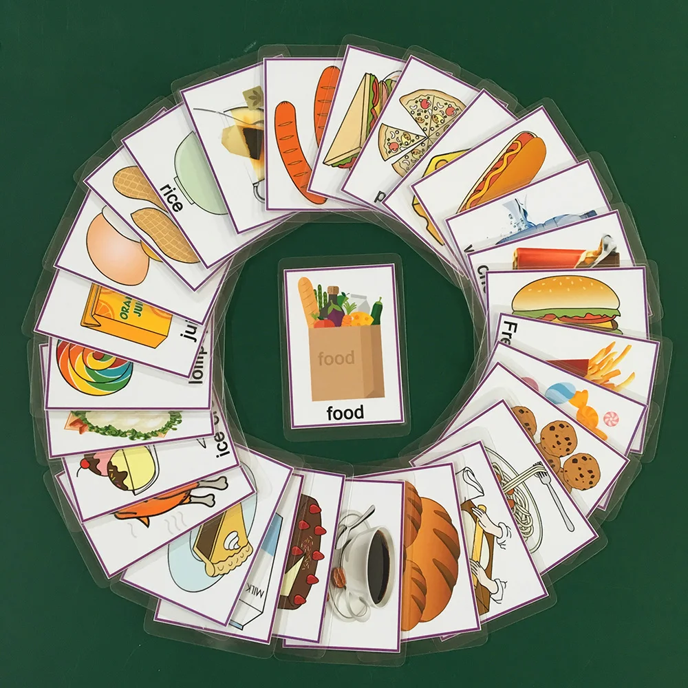28 шт./компл. игрушки Монтессори Детские карточки с надписью английские флэш-карты категории еды яйцо торт молоко дошкольник Учительская помощь