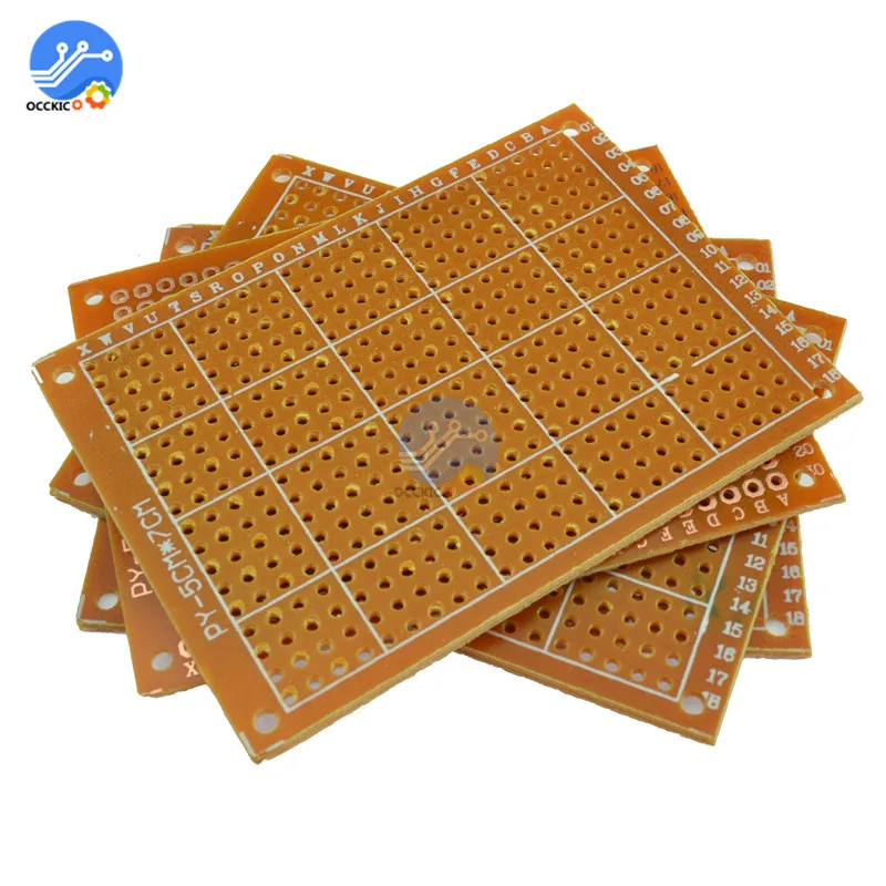 Описание: 100% новый и высокое качество Материал: односторонняя медная печатная плата Диаметр отверстия: около 1 мм Шаг отверстия: Стандартный 2,54 мм Размер изделия: около 5 см * 7 см Для точечной пайки DIY Содержание упаковки: 5 * PCB универсальная плата