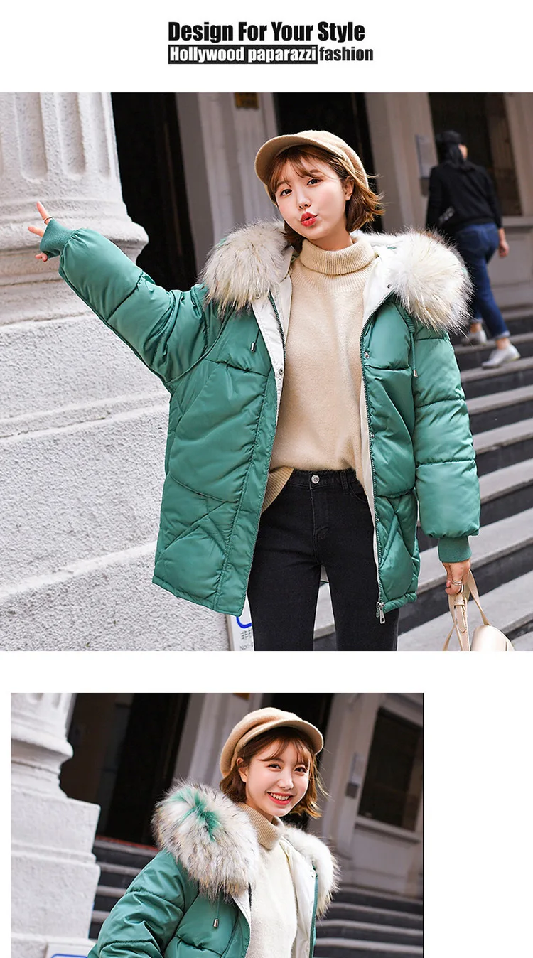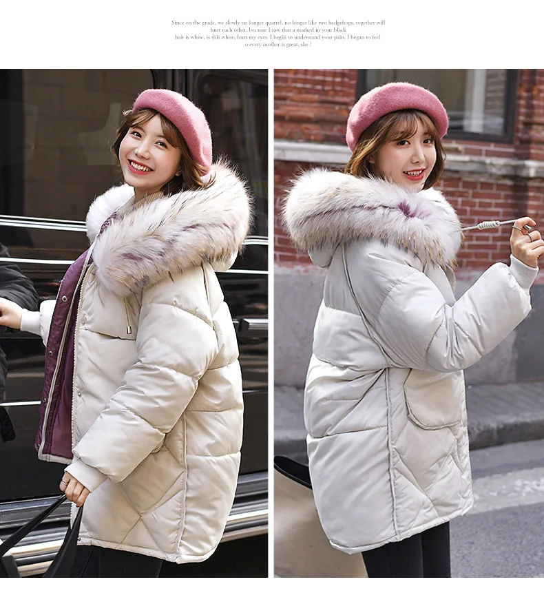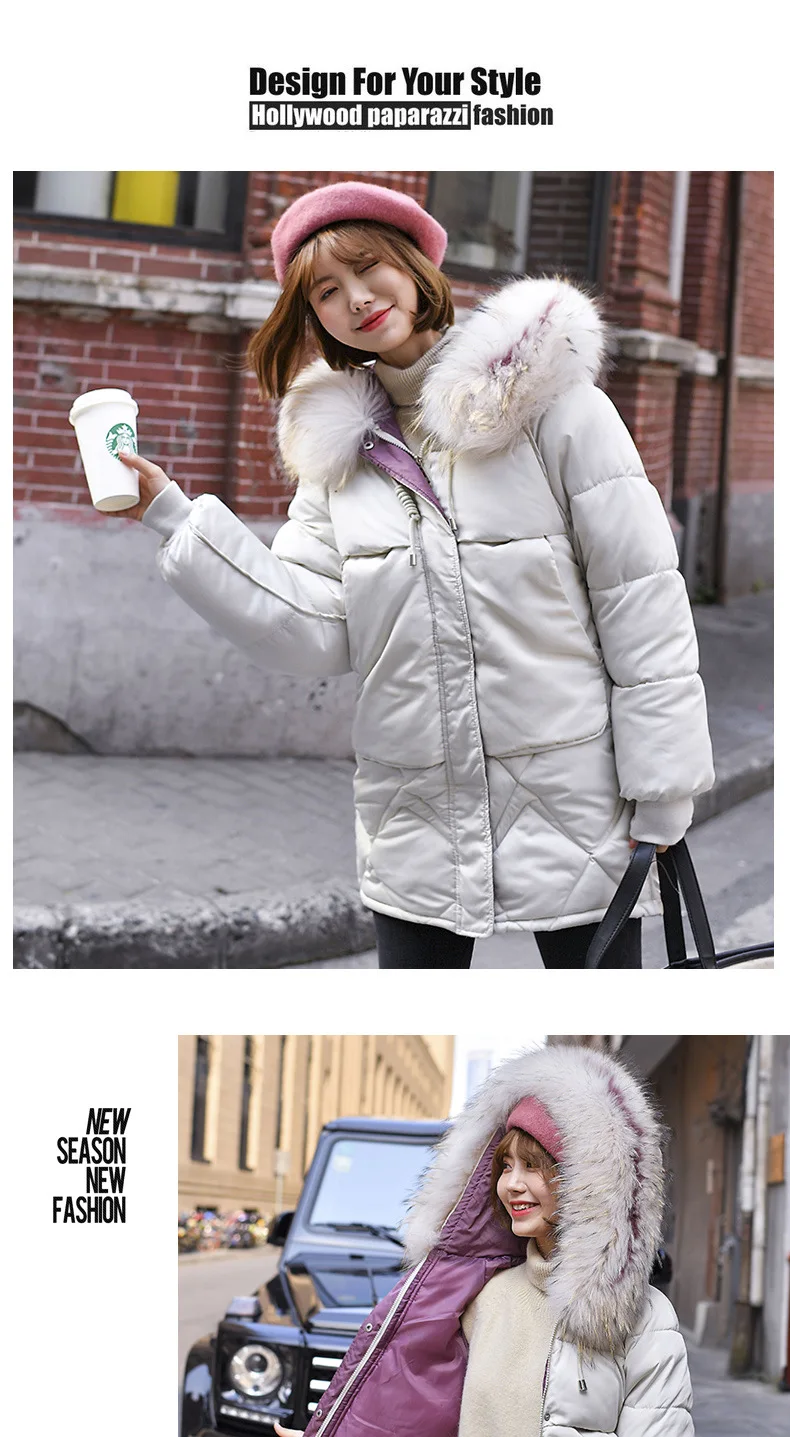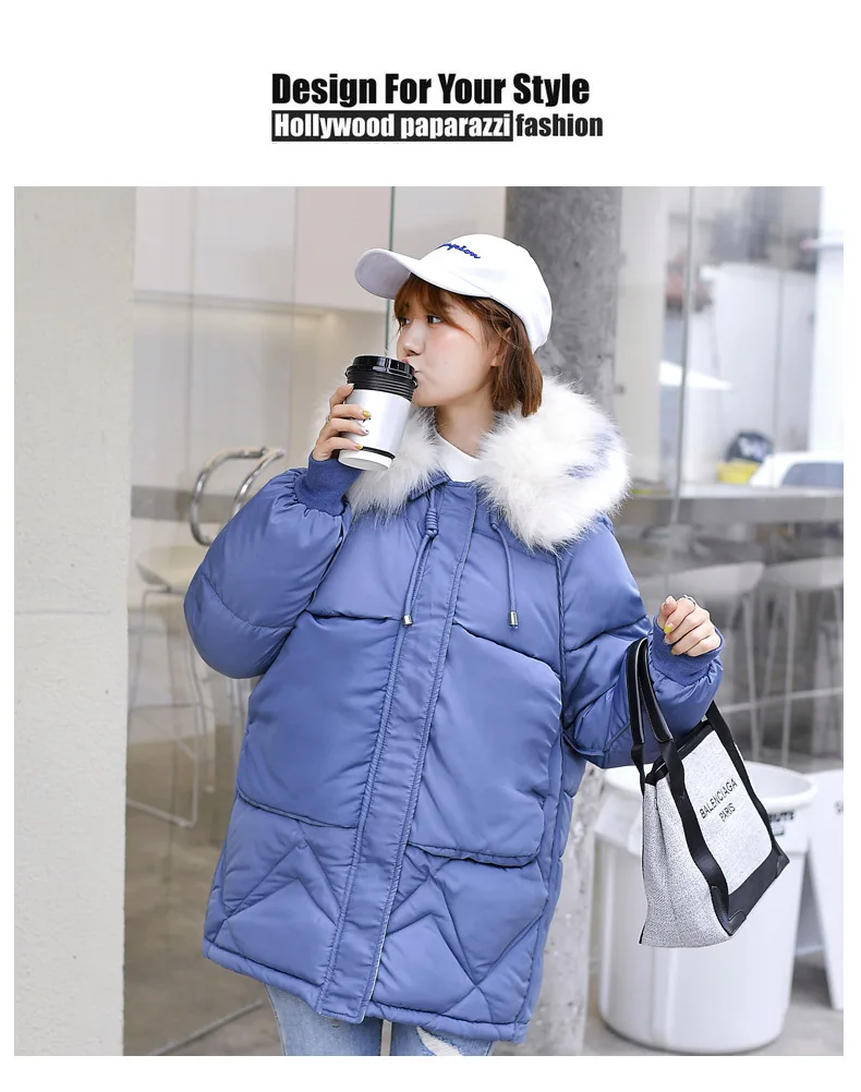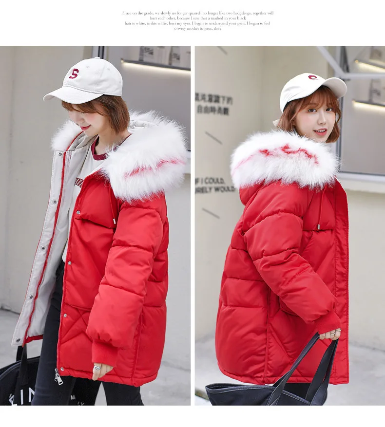 Женская куртка с капюшоном LUZUZI, теплая однотонная куртка из хлопка с меховым воротником в Корейском стиле свободного размера плюс, зима 2019