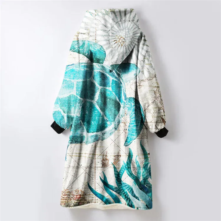 Thick Fleece Hooded Blanket with Sleeves Warm Winter TV Blanket Sofa