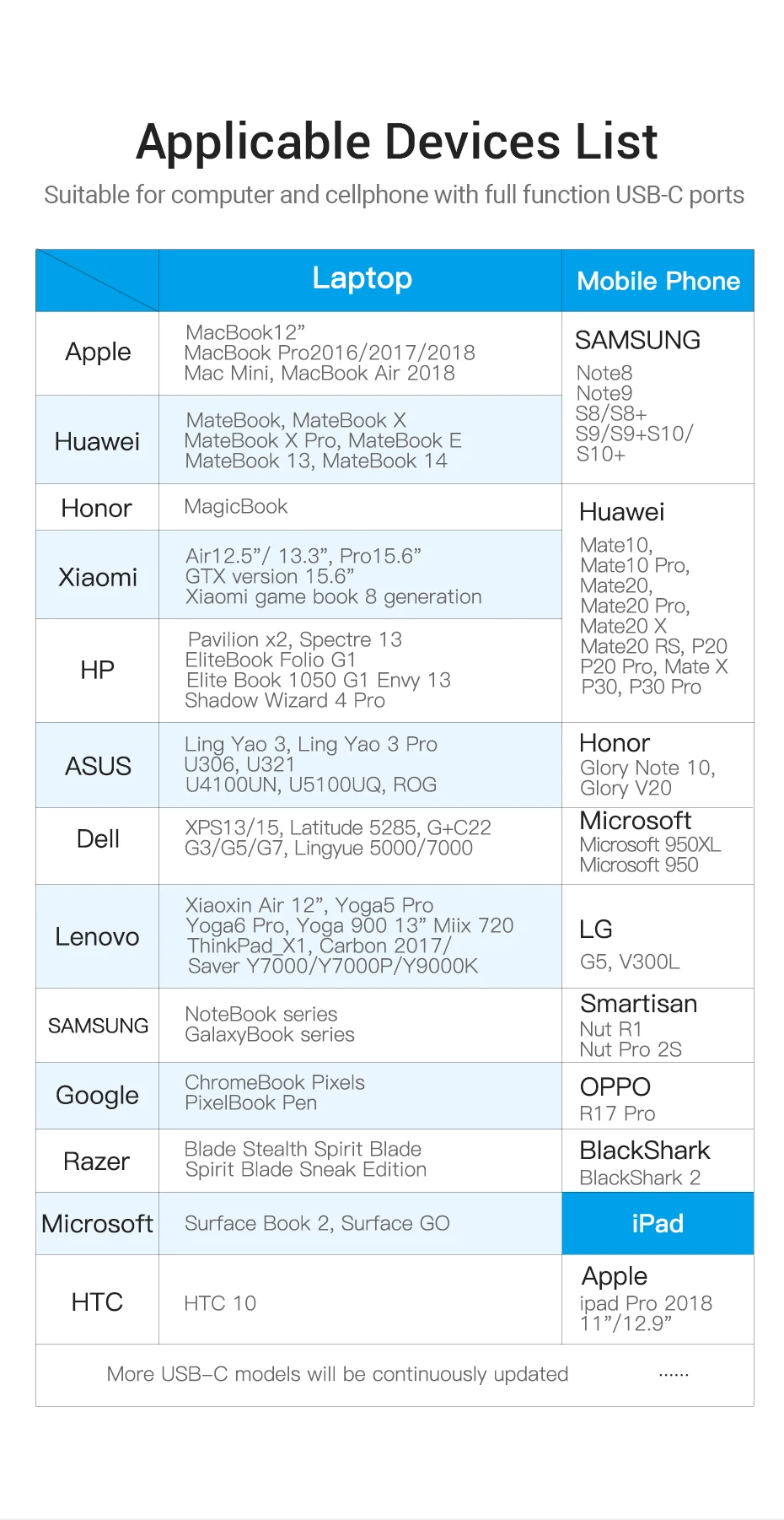 Applicable Devices List