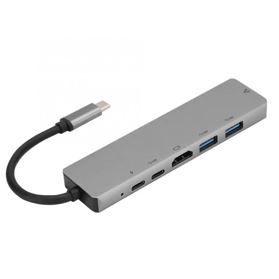 Легкий СЕРОГО МЕТАЛЛА 6-в-1 USB-C для Тип-C поддержкой 3 USB3.0 концентратор HDMI Rj45 Ethernet мини SDTF адаптер для использования на ходу