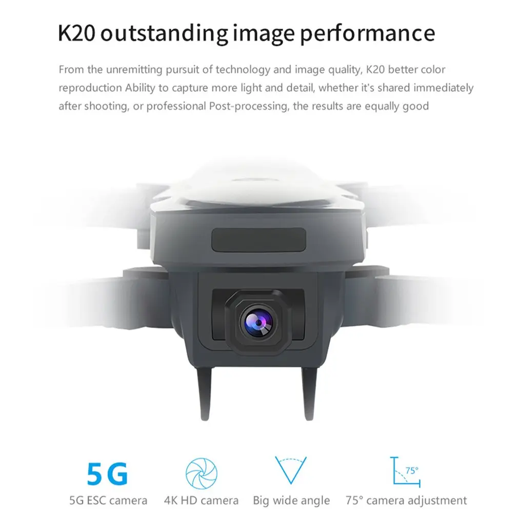 Версия WIFI камеры поставляется с 4K HD Gimbal камерой. 110 ° Широкий угол, угол ESC 75 °.