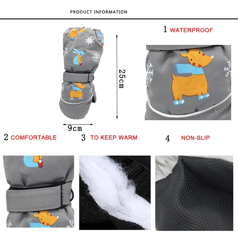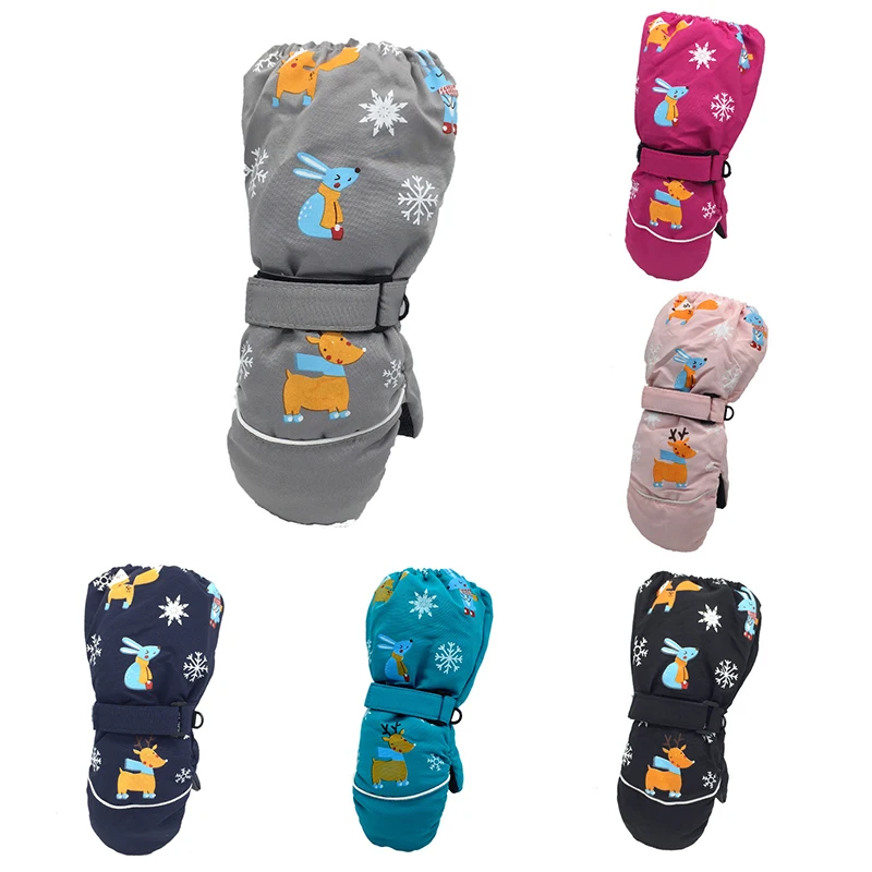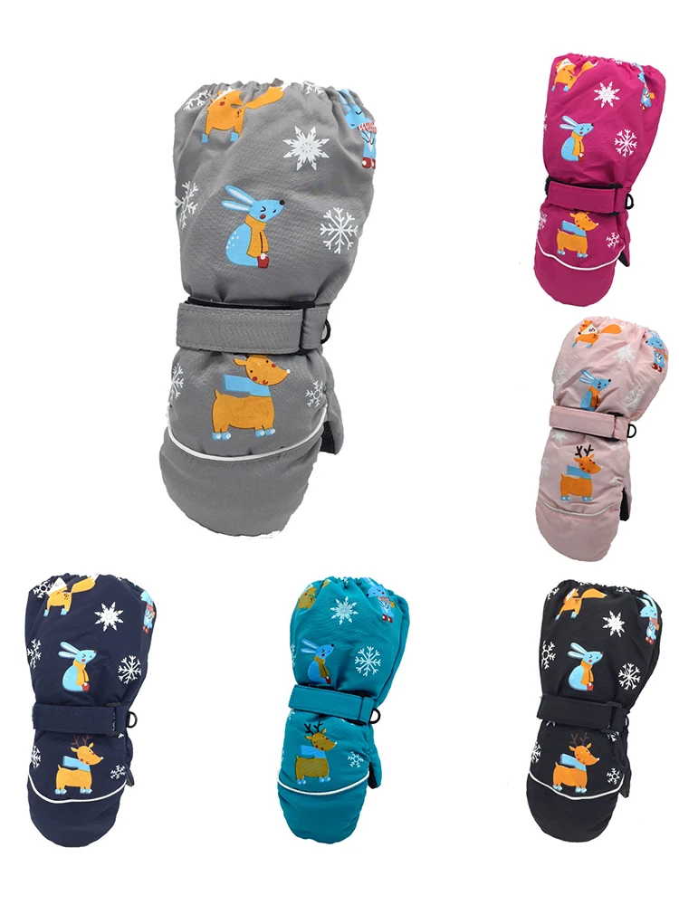 1 пара, новые зимние Детские утепленные лыжные перчатки с рисунком оленя и кролика детские ветрозащитные водонепроницаемые Нескользящие варежки с длинными рукавами