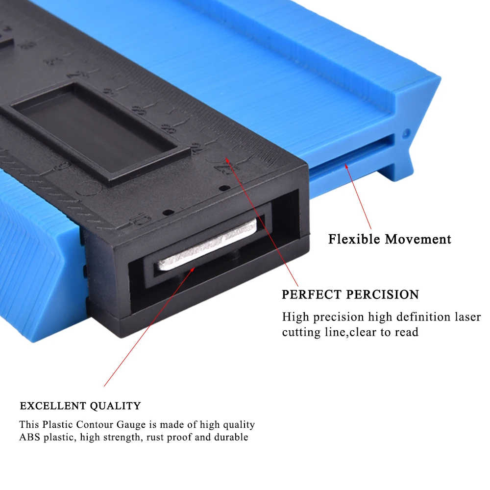 > Особенности Контурный датчик профиля. Неправильный контурный датчик профиля предназначен для намоточных труб, круглых рам, воздуховодов и многих объектов. Просто прижмите зуб к предмету, чтобы соответствовать контуру, а затем отследить нужную вам форму. Датчик может быть использован для измерения формы неправильных элементов. Изготовлен из высококачественного АБС-пластика, прочный, прочный, высокопрочный, прочный, антикоррозийный. Просто нажмите контурный датчик на форму. Скопируйте профиль и нарежьте его по форме. Идеально подходит для установки плитки, ламината, ковра, проверки размеров, литья и т. д. Высокая точность. Высокая четкость, четкость, легко и удобно читать. Подходит для деревообработки, автоматического металлического листа, нержавеющей стали или любых работ по дублированию контура. > Технические характеристики Тип: Неправильный контурный манометр Количество: 1 шт. Материал: пластик Цвет: синий Размер: 12 см, 25 см > Посылка включена (опционально) 1 x контурный манометр