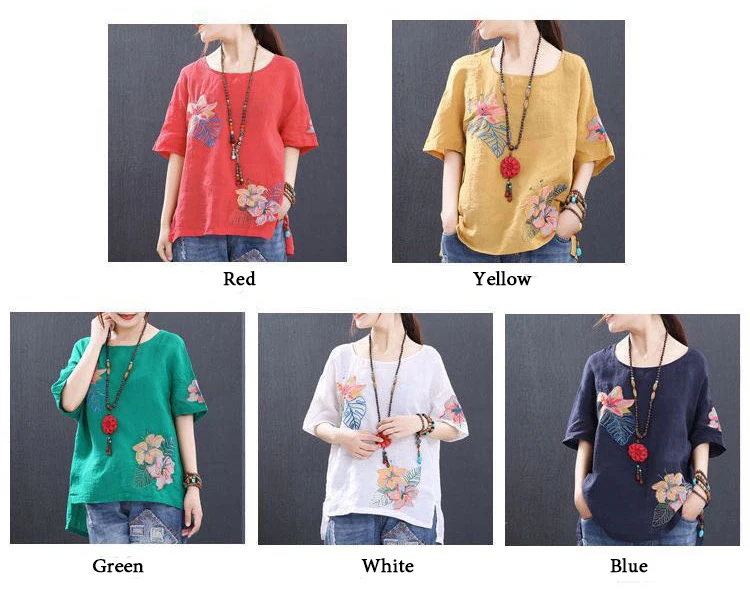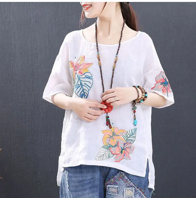 Женская Повседневная Блузка с вышивкой, 100% хлопок, высокого качества, размера плюс