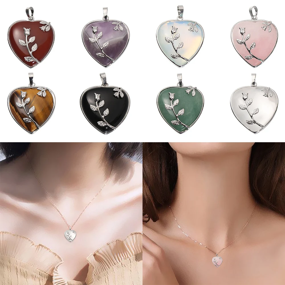 Новинка рейки минералы в форме сердца кристалл натуральный кварц чакра исцеляющий камень драгоценный камень кулон DIY подарок домашний декор ювелирные изделия ручной работы
