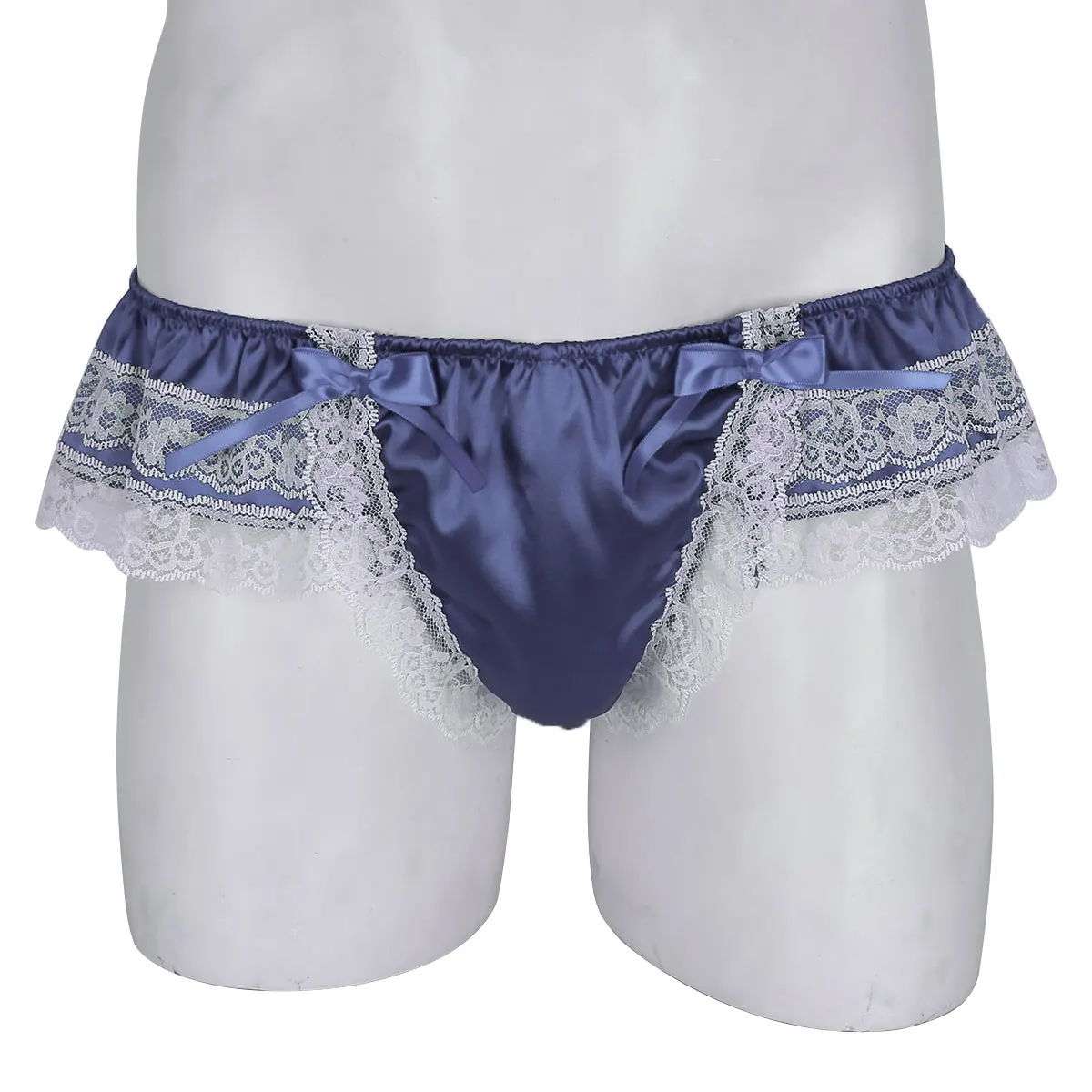 Men’s bikini thong underwear panties, shiny satin fabric.