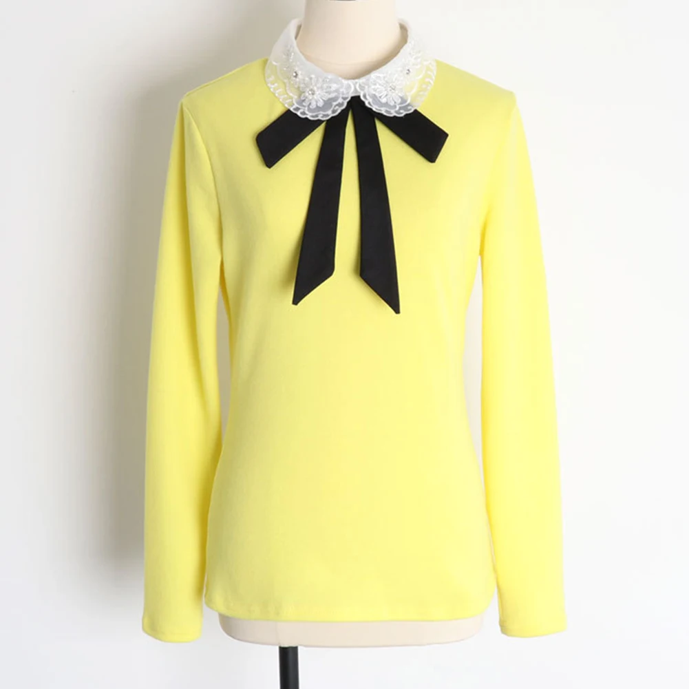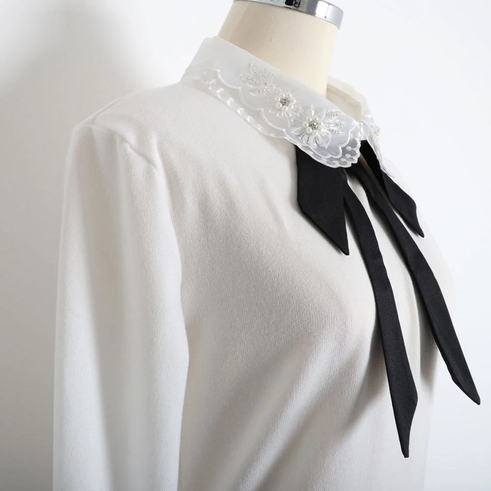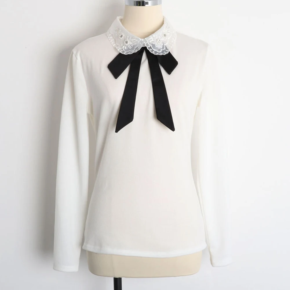 -Вышивка на воротнике и галстуке-бабочке, эта блузка-это такая одежда, которая делает вас элегантной и милой.