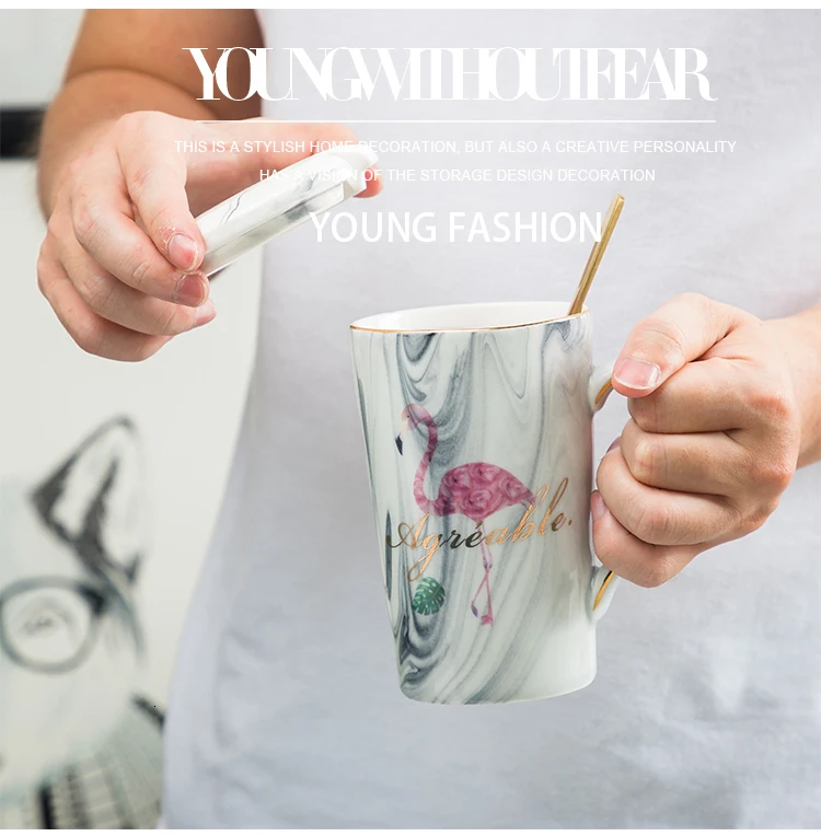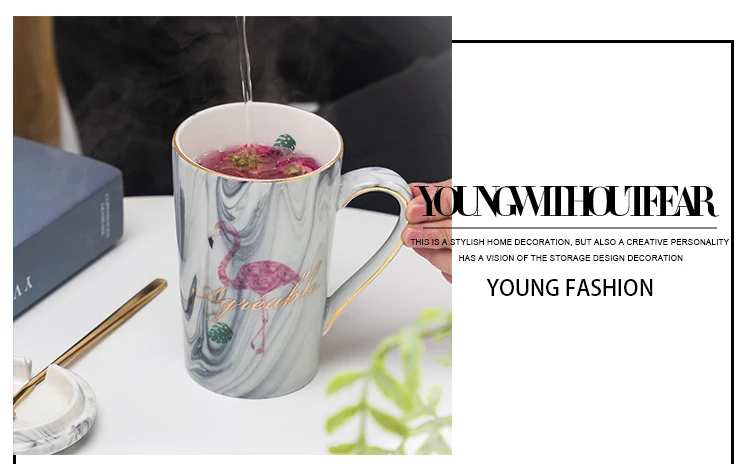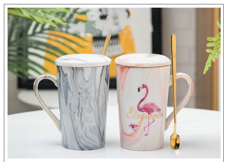 Простая парная чашка и кружка с фламинго, Подарочная коробка, керамическая кофейная кружка с мраморным узором, домашняя посуда для напитков, подарок для влюбленных, свадебный подарок, Caneca