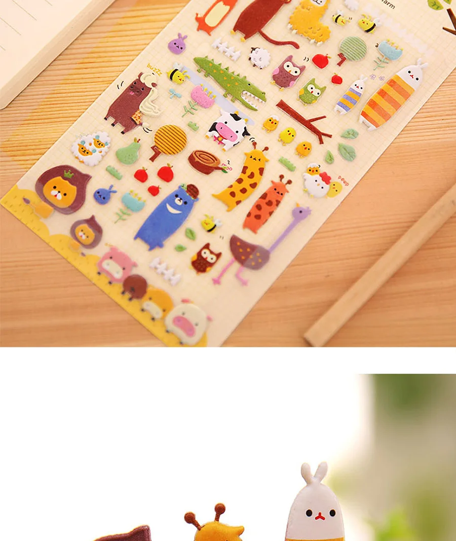 Мультяшный стикер с животным 3D Игрушечная машина грузовики еда Цветы Дети игрушка стикер милый Скрапбукинг календарь альбом деко стикер 2 листа