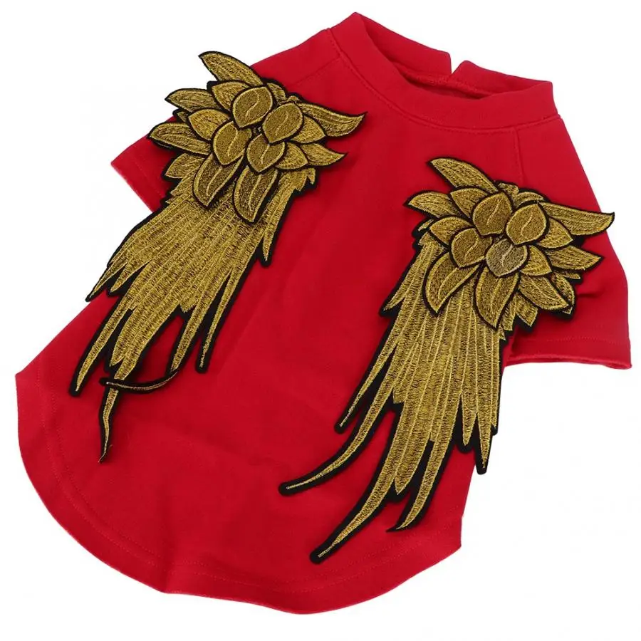 Красная хлопковая Милая одежда для домашних животных, костюм, одежда с золотыми крыльями для кошек и собак