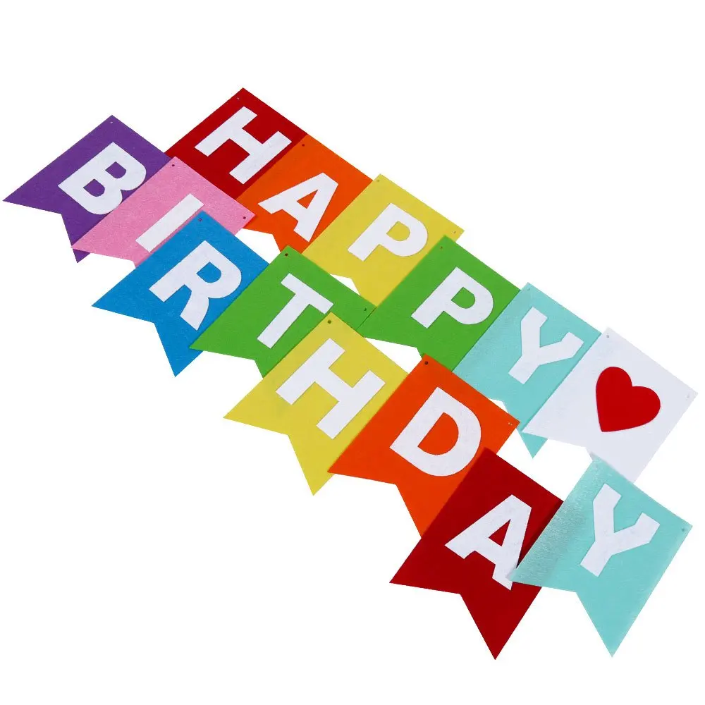 Баннер с днем рождения изготовлен из разноцветной фетровой ткани, яркий, прочный и легко повесить и снять в следующий раз