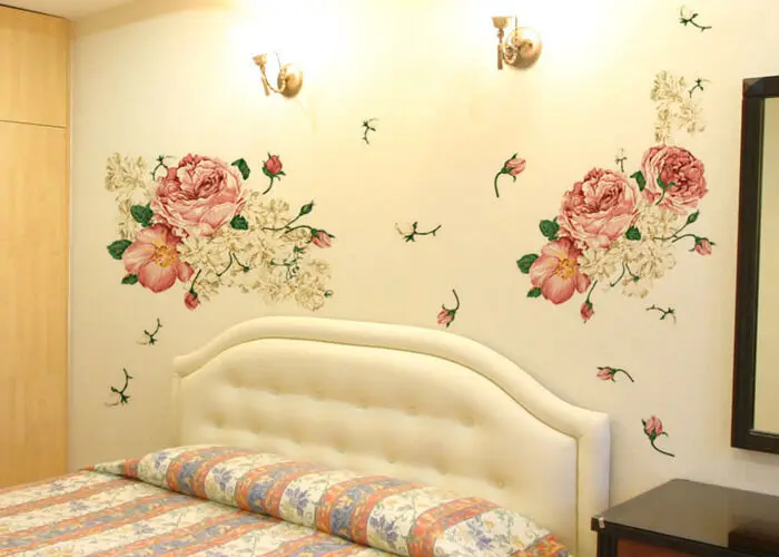 Посылка: 1 x огромные Роскошные пионы цветы наклейки на стену художественная роспись Декор Наклейка для гостиной