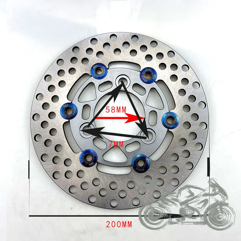 Особенности: 1. 100% новый cnc алюминиевый электрический мотоцикл 200 мм тормозной диск 2. Размер: перед покупкой, пожалуйста, проверьте размер мотоцикла. 3. Материал: 100% высококачественный алюминий с ЧПУ 4. 200 мм тормозной диск с 3 установочными отверстиями, расстояние каждого отверстия установки составляет 7 см, внутренний диаметр about58I знаю. 5. Подходящие модели: для Honda Dio 28/34/35/36 6. Цвет: красный/серый/черный/золотой/оранжевый/синий Чисто ручное измерение, допускается погрешность 1-2 мм