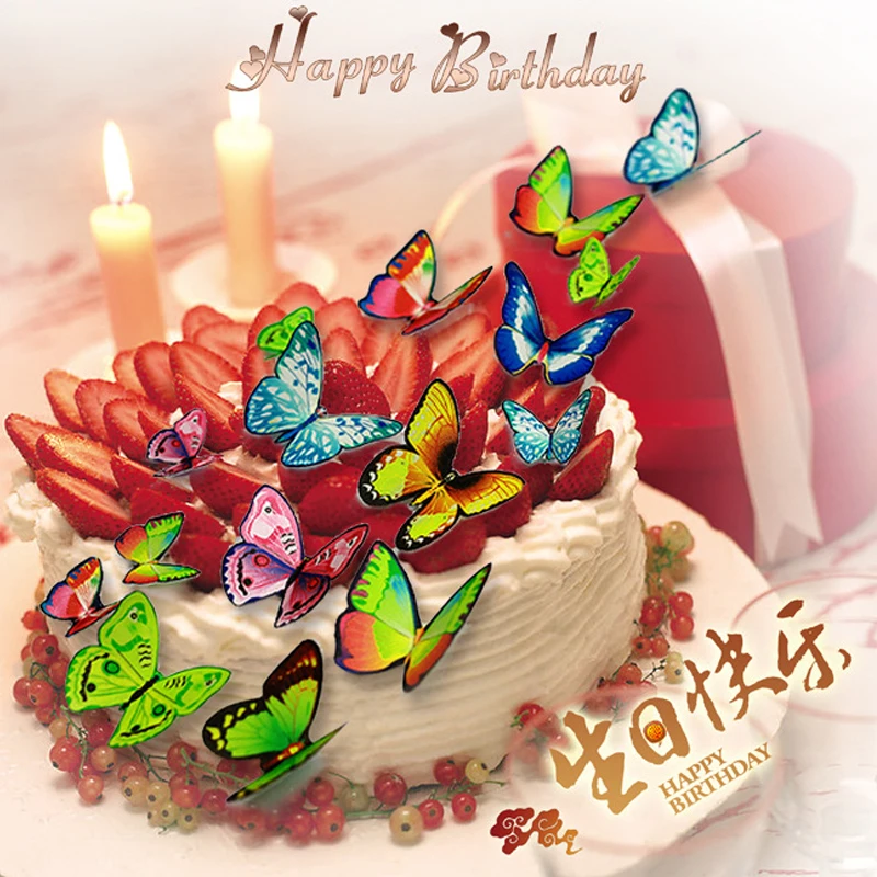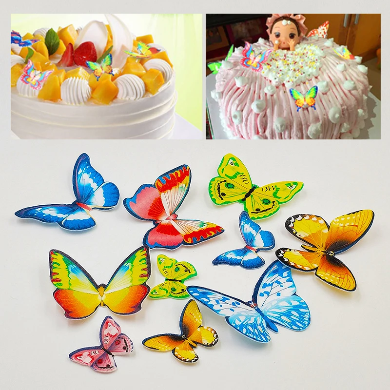 Продажа, украшение для торта, 1 коробка, вафельница для торта, рисовая бумага, высокое качество, смешанные, для дня рождения, свадьбы, бабочки, съедобные, клейкие, кекс, топперы