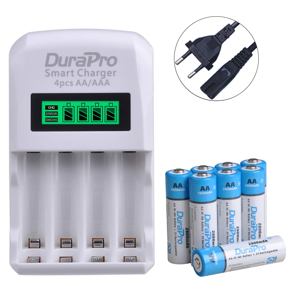 2800mAh AA, AAA ni-mh перезаряжаемая батарея + LCD 4 слота зарядное устройство с вилкой EU/US/UK для калькулятора MP3-плеера, дистанционного управления, игрушек, камеры