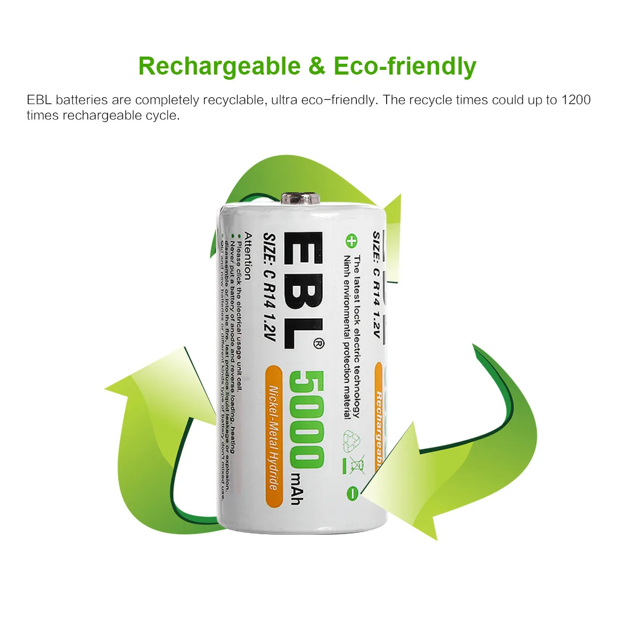 EBL партия C Размер 5000mAh R14 Ni-MH аккумуляторы + AA AAA 9V зарядное устройство