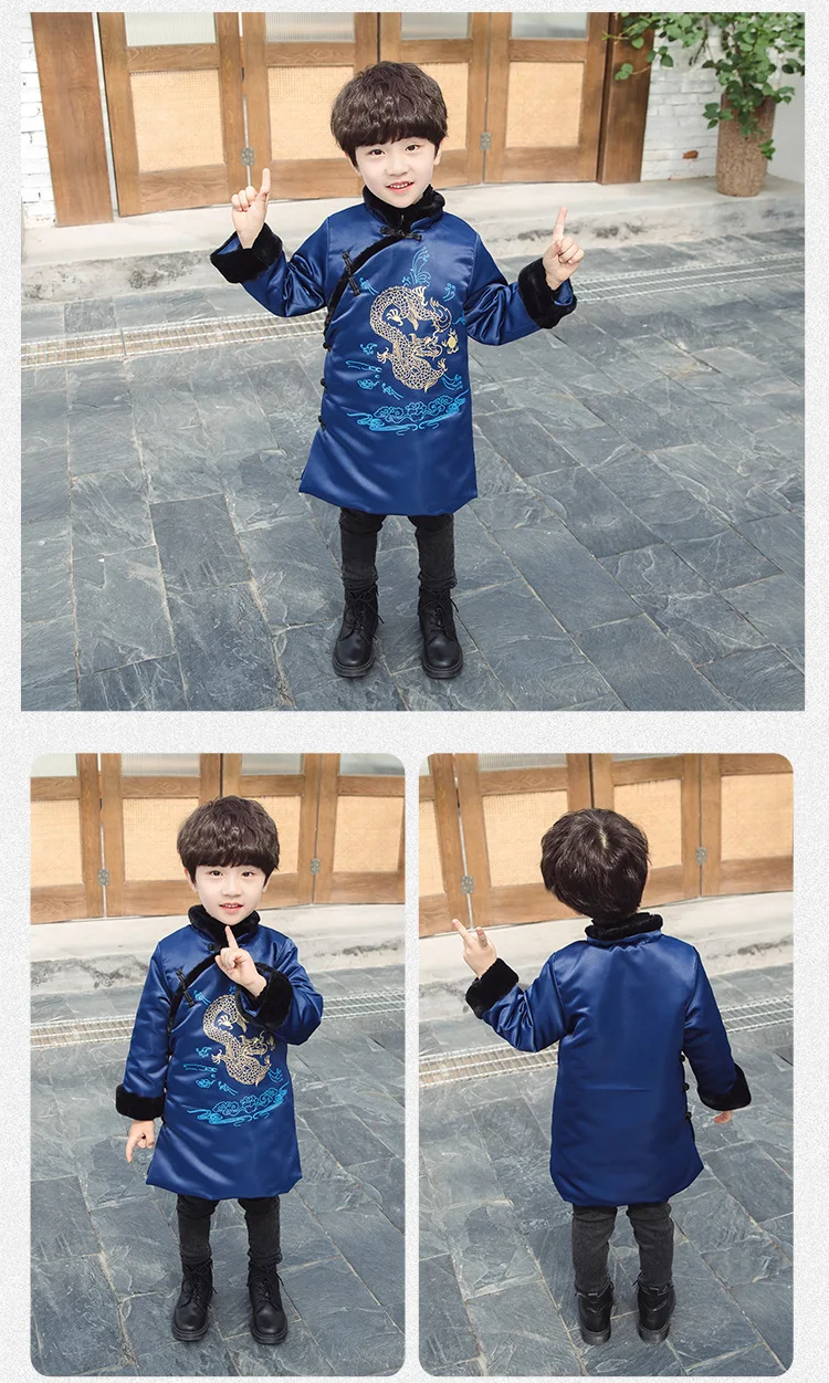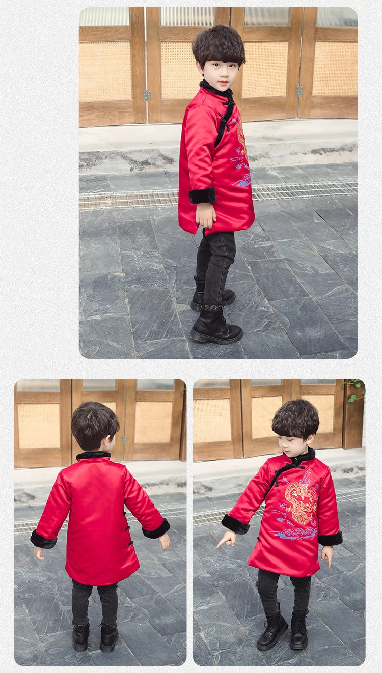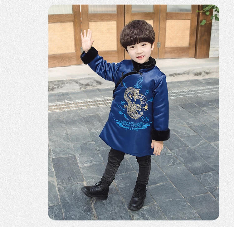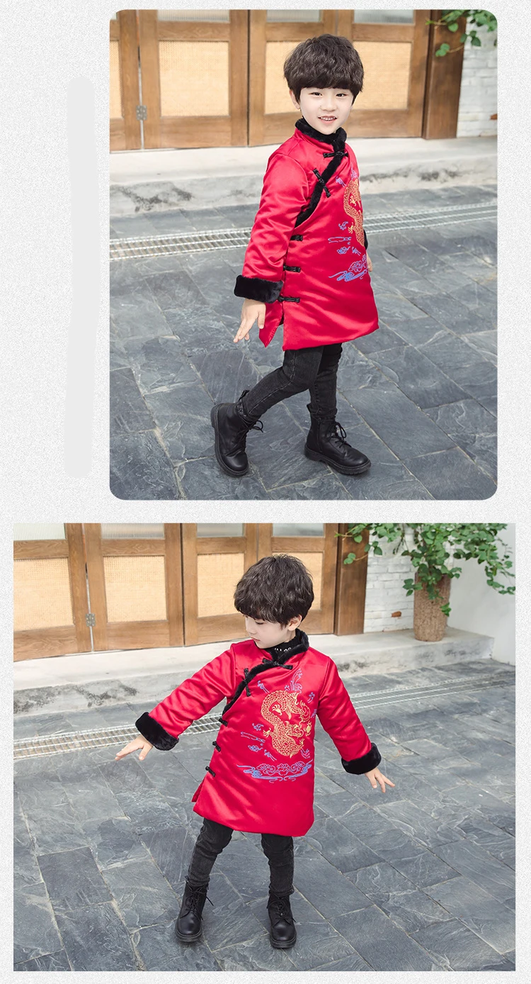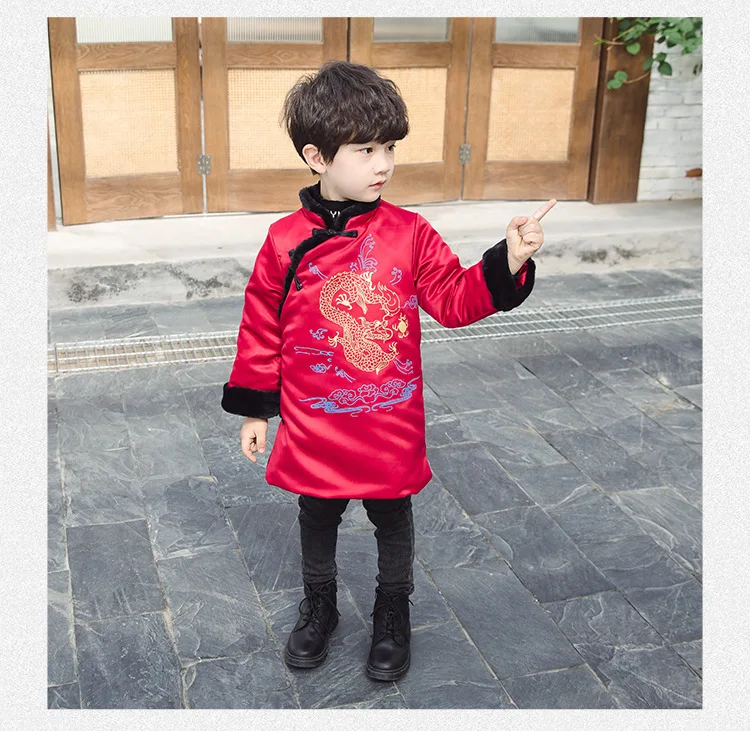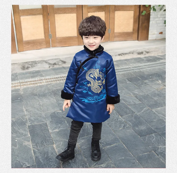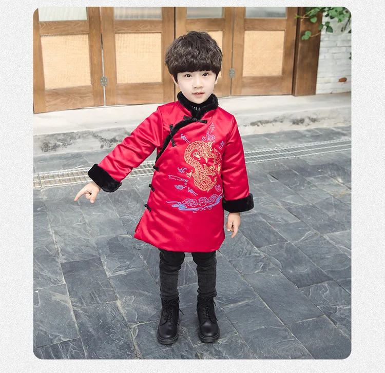Новогоднее пальто для мальчиков теплое зимнее пальто с хлопковой подкладкой и драконом в традиционном китайском стиле одежда на новый год Лидер продаж 2020 года, Детское пальто