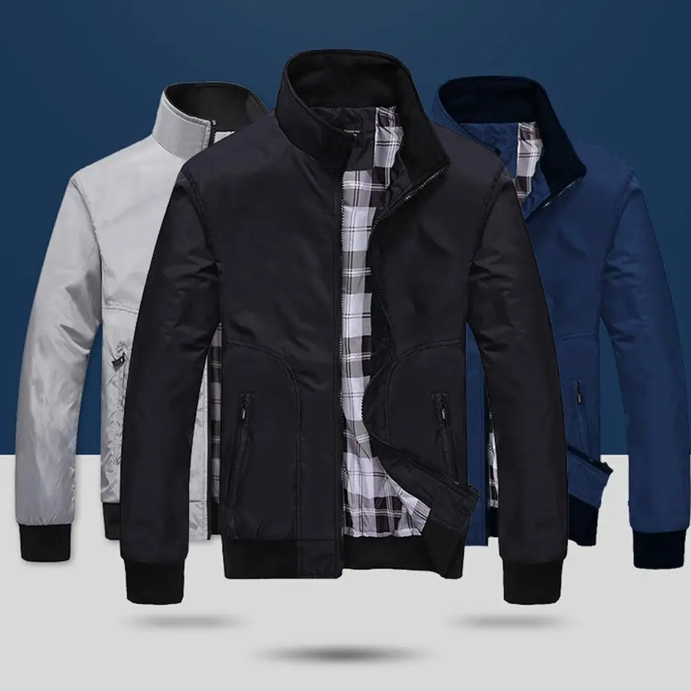 Модная мужская зимняя однотонная куртка на молнии с воротником-стойкой и карманами