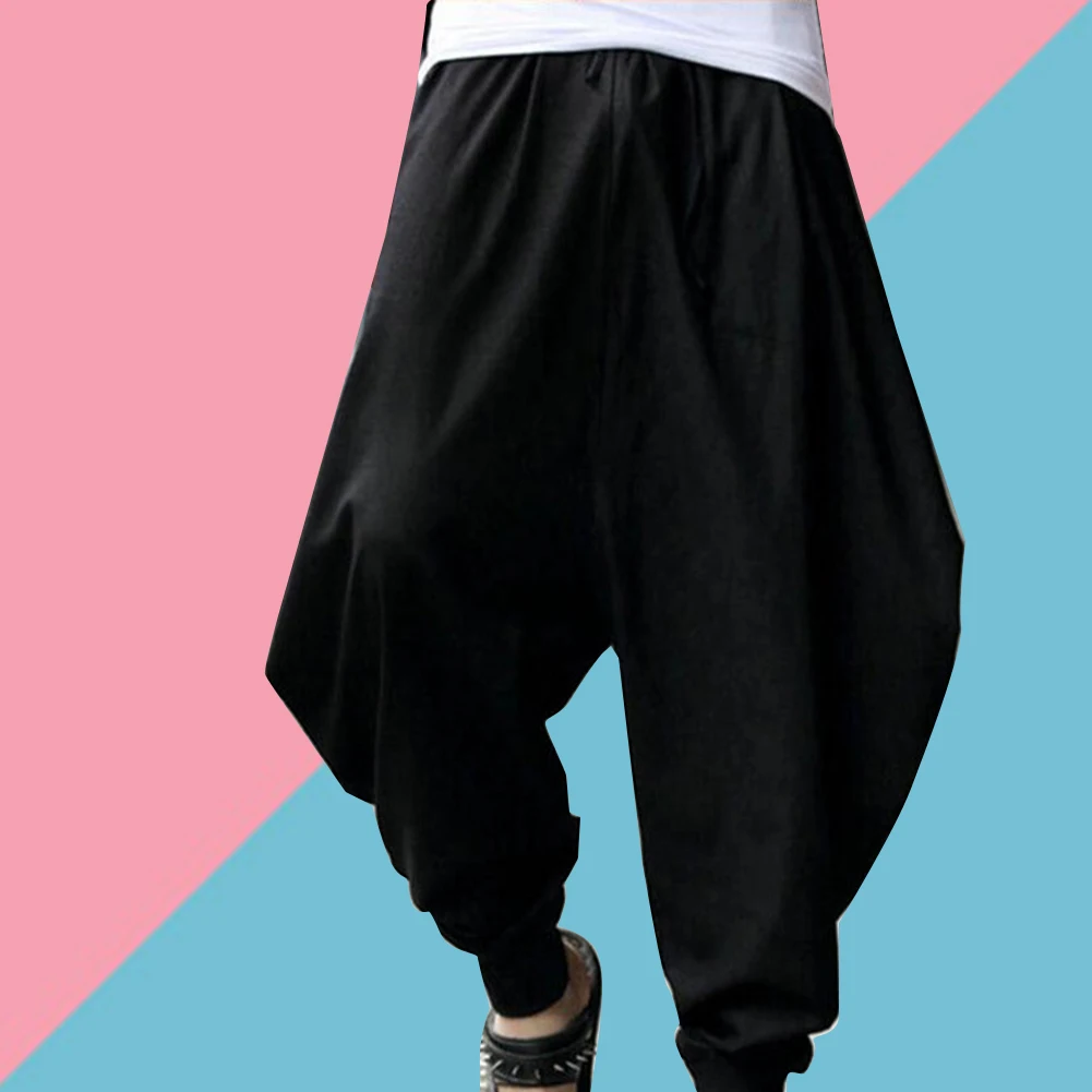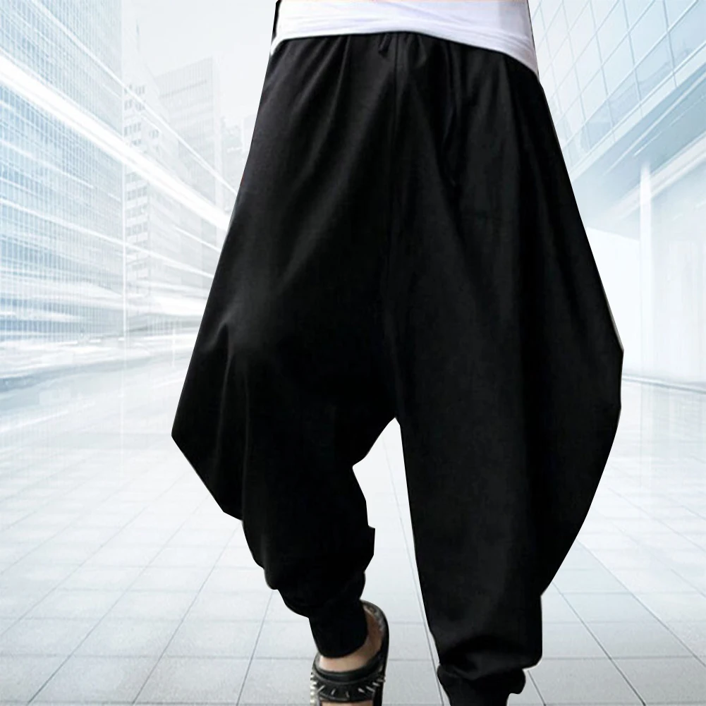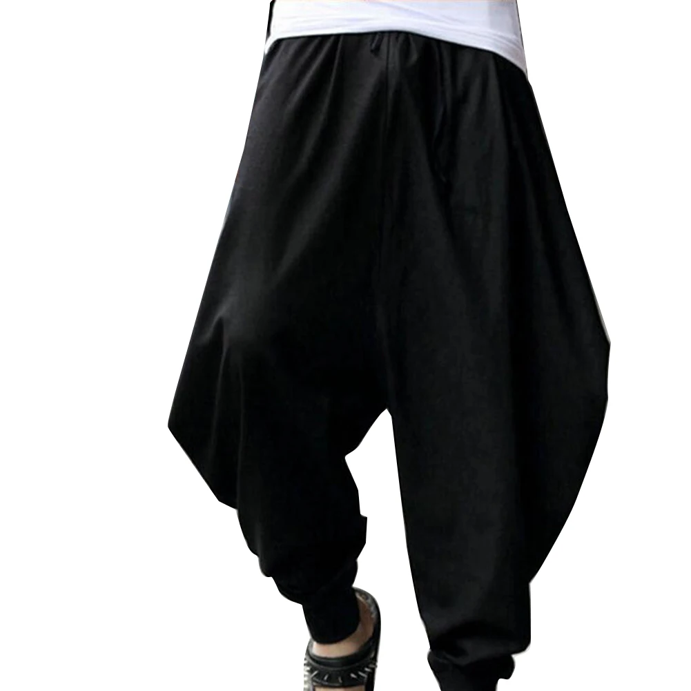 Хип-хоп мужские хлопковые брюки с заниженным шаговым швом и завязками на лодыжке, свободные длинные штаны с завязками