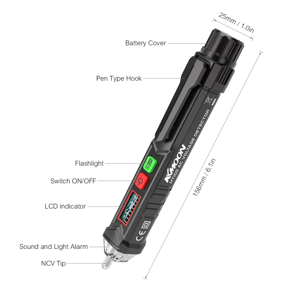 Тестер напряжения имеет Бесконтактный дизайн и форму ручки, он может обнаруживать напряжение переменного тока в 12 В ~ 1000 В и 48 В ~ 1000 В. Портативная форма ручки, удобно носить с собой. Широко используется в исследовании промышленной мощности и домашней линии.
